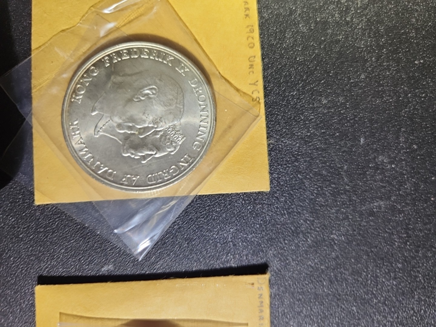 Description: The product is a lot of two 5 Kroner coins from Denmark, one from the year 1960 and the other from 1964. These coins are in uncirculated condition and are uncertified. They are a valuable and collectible piece of Danish currency history, showcasing the unique designs and minting techniques of the time period. Perfect for collectors or enthusiasts looking to add a piece of Danish numismatic history to their collection.