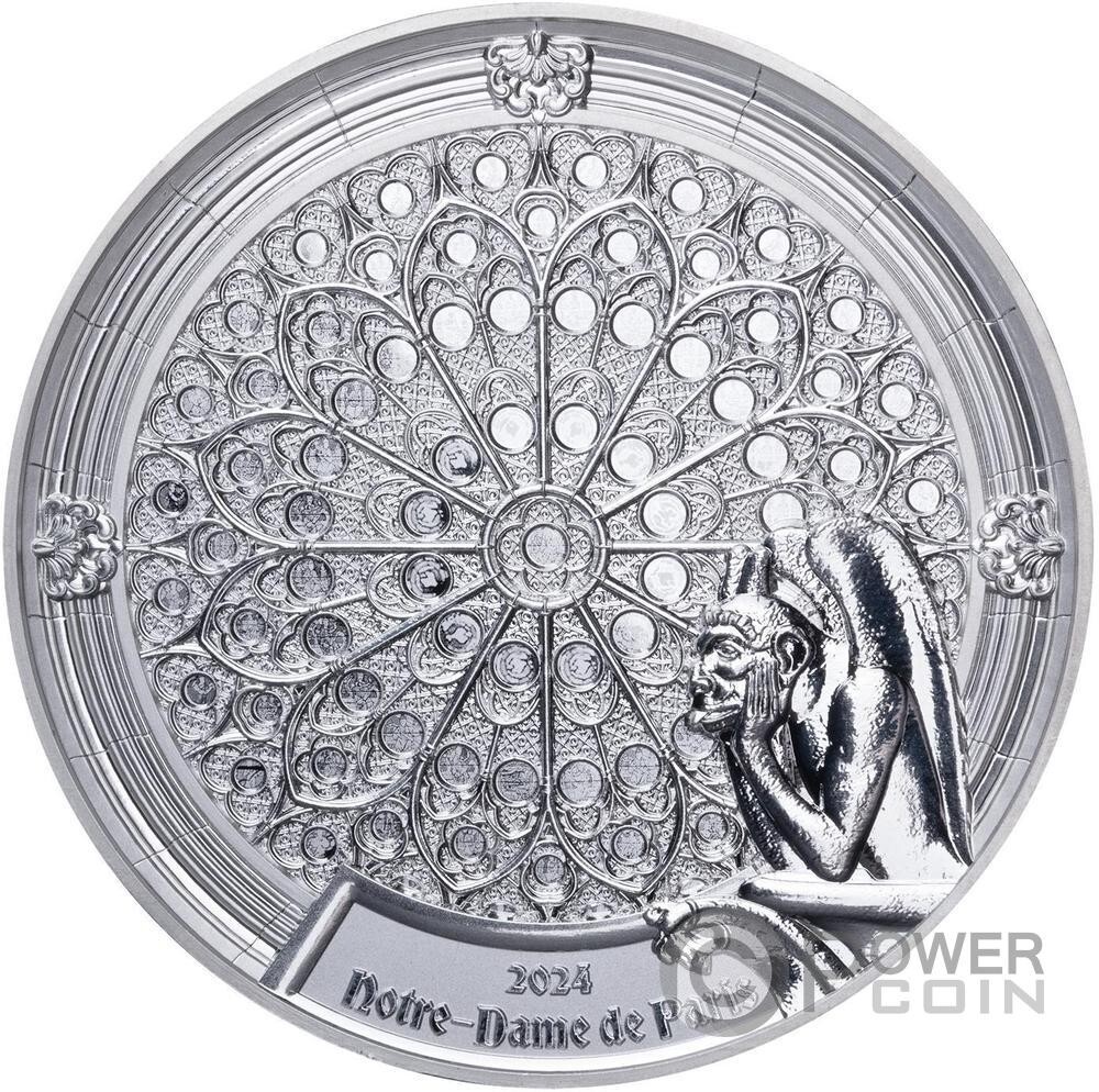 Description: A polished gargoyle on the right gazes thoughtfully, embodying the iconic character of the cathedral. The bottom center displays the Coat of Arms of Djibouti and the denomination “200 FRANCS”. Year: 2024.