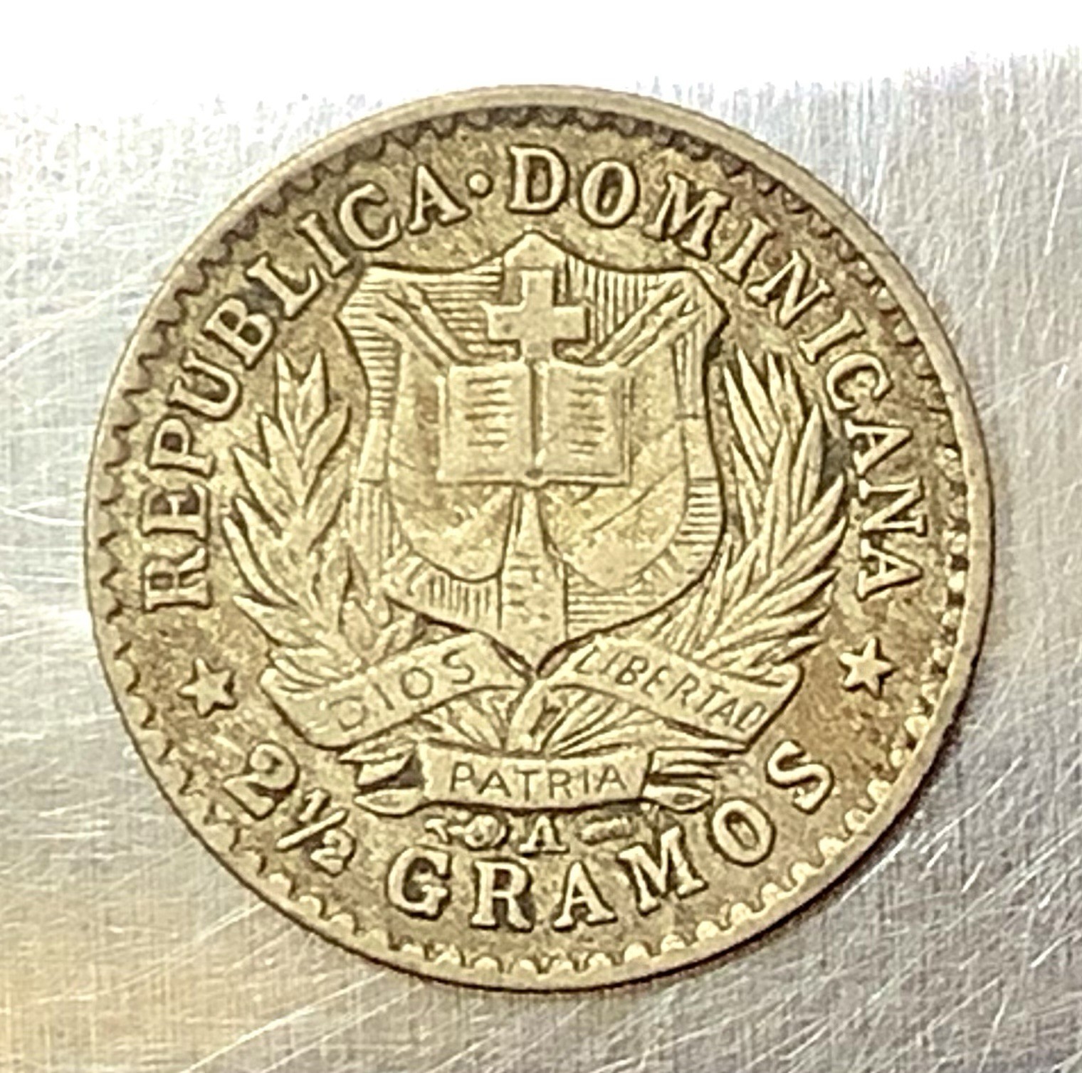 Description: Dominican Republic 10 Centavos in about VF Condition. This coin is comprised of about 0.35 fine silver and contains 0.02 Troy Oz of Silver (2/100 of a troy oz). Weight in excess of 15 oz. ASW: 0.0281oz.