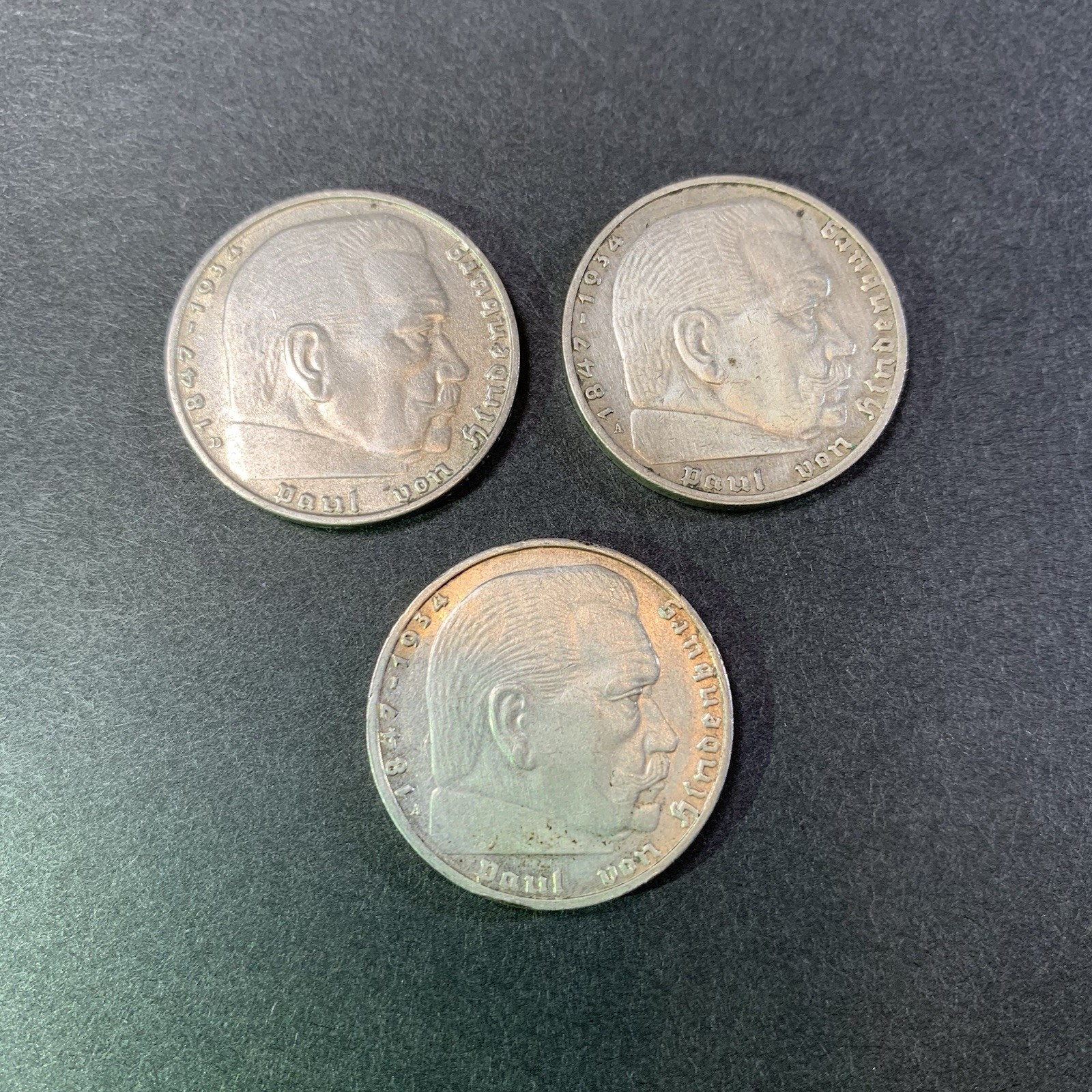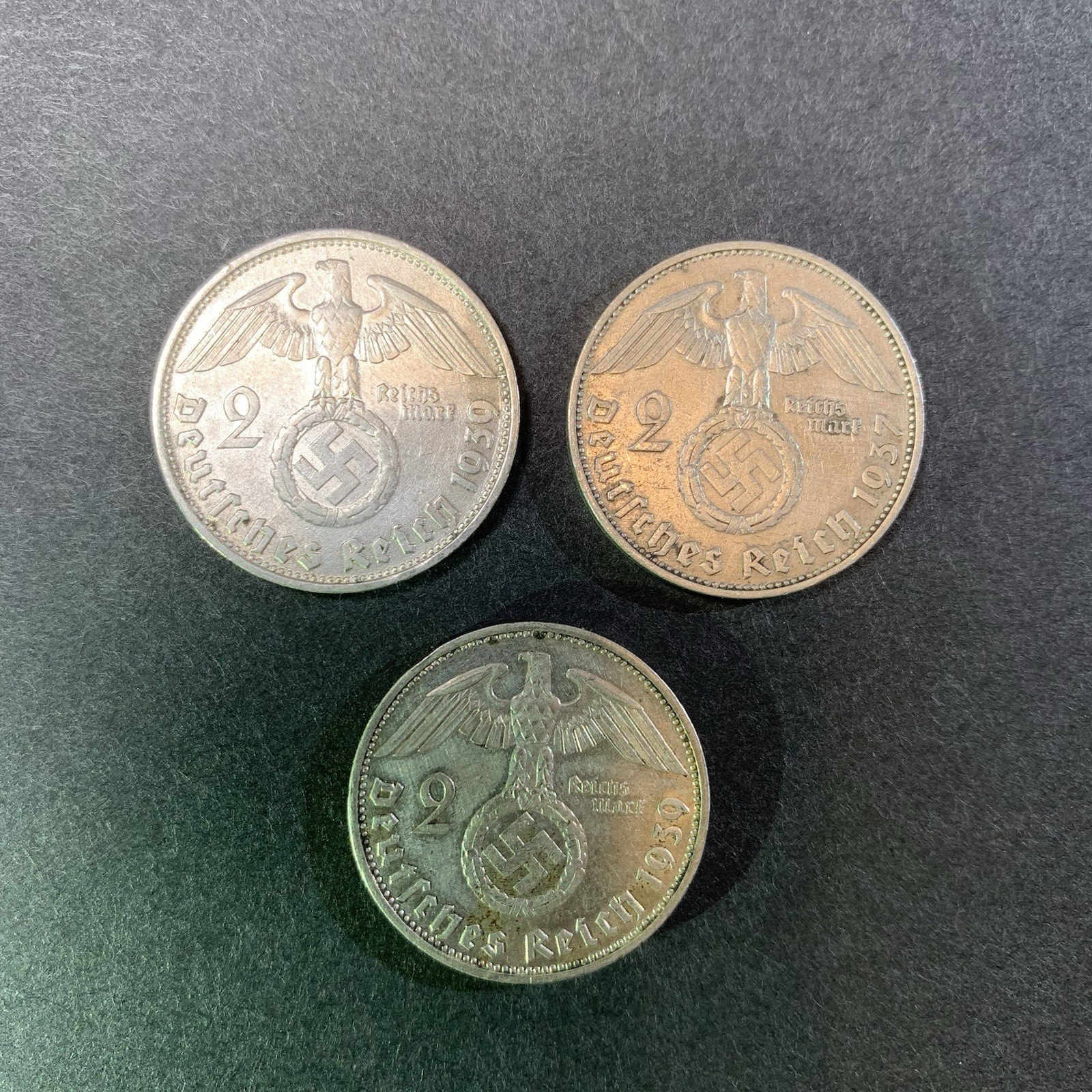 Description: 3 Silver Coins One-1937 two-1939 THIRD REICH GERMANY 2 REICHSMARK – Silver Coins