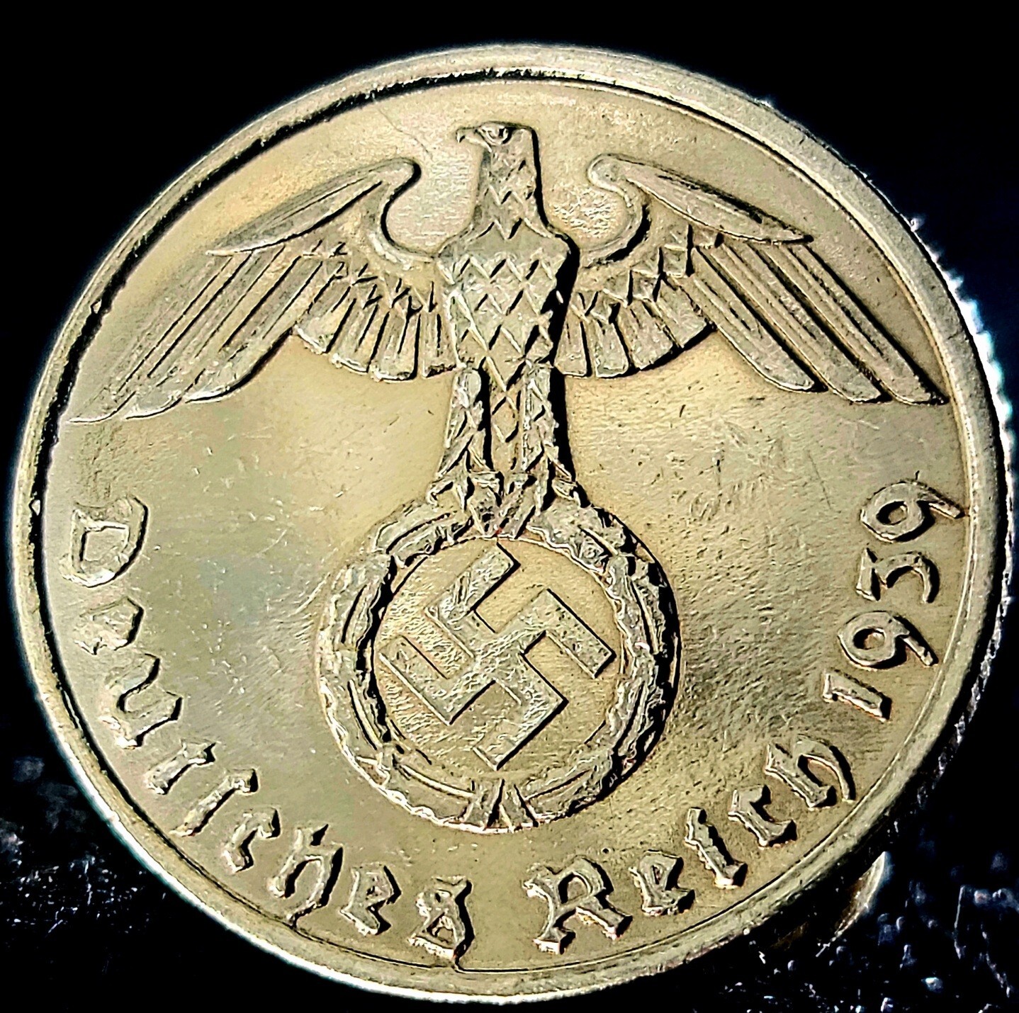 MIRROR FINISH 5 Reichspfennig Coin - Brass WW2 Era Germany - Third Reich