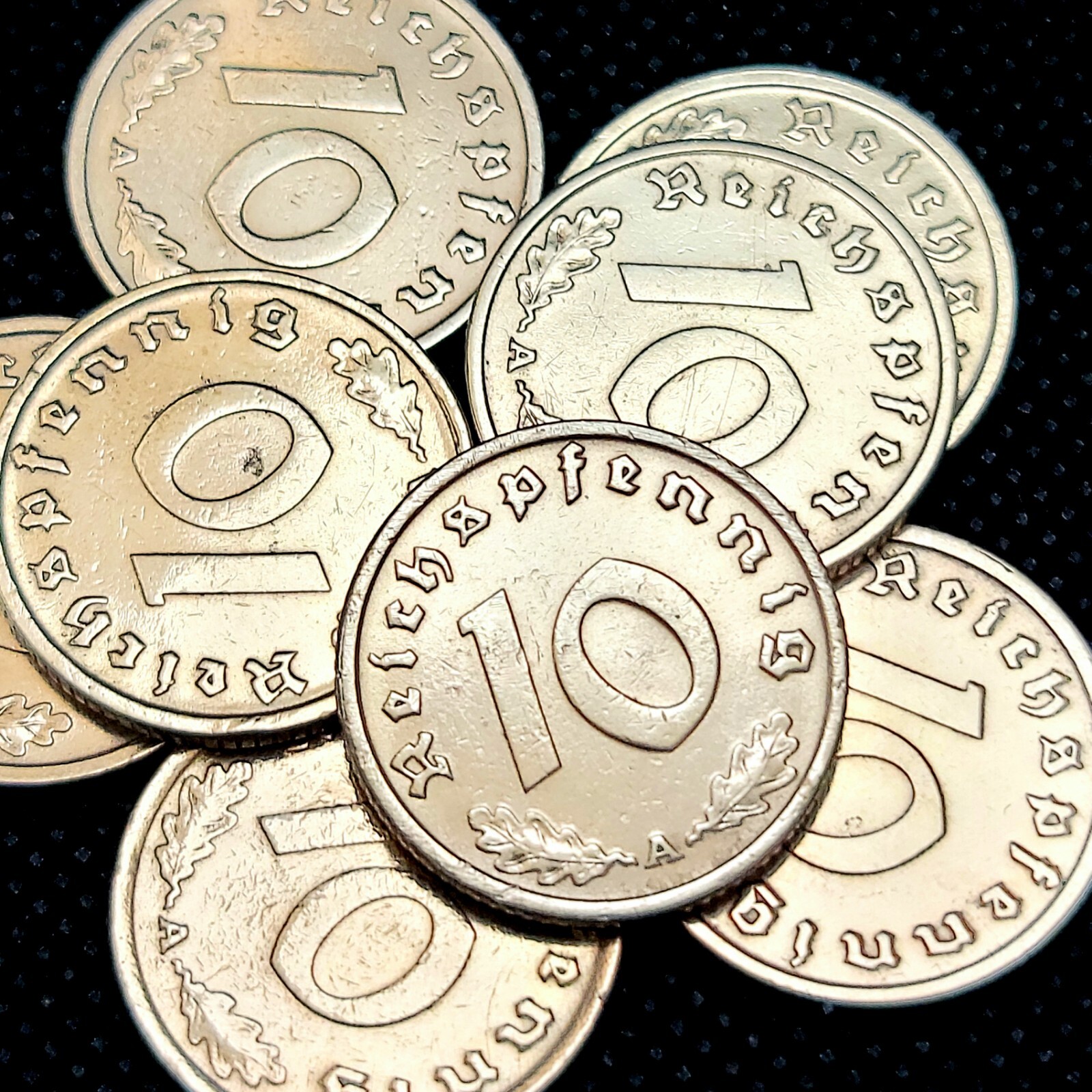 LOT OF AUTHENTIC OLD COINS OF THIRD REICH NAZI GERMANY (1940-1944) WORLD WAR II
