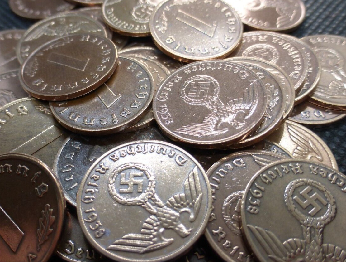 Description: These coins have the Reich Eagle with Swastika on the front. These coins were used throughout Germany during WW2. We will give you a diversity of different years and mintmarks if multiples are ordered.
