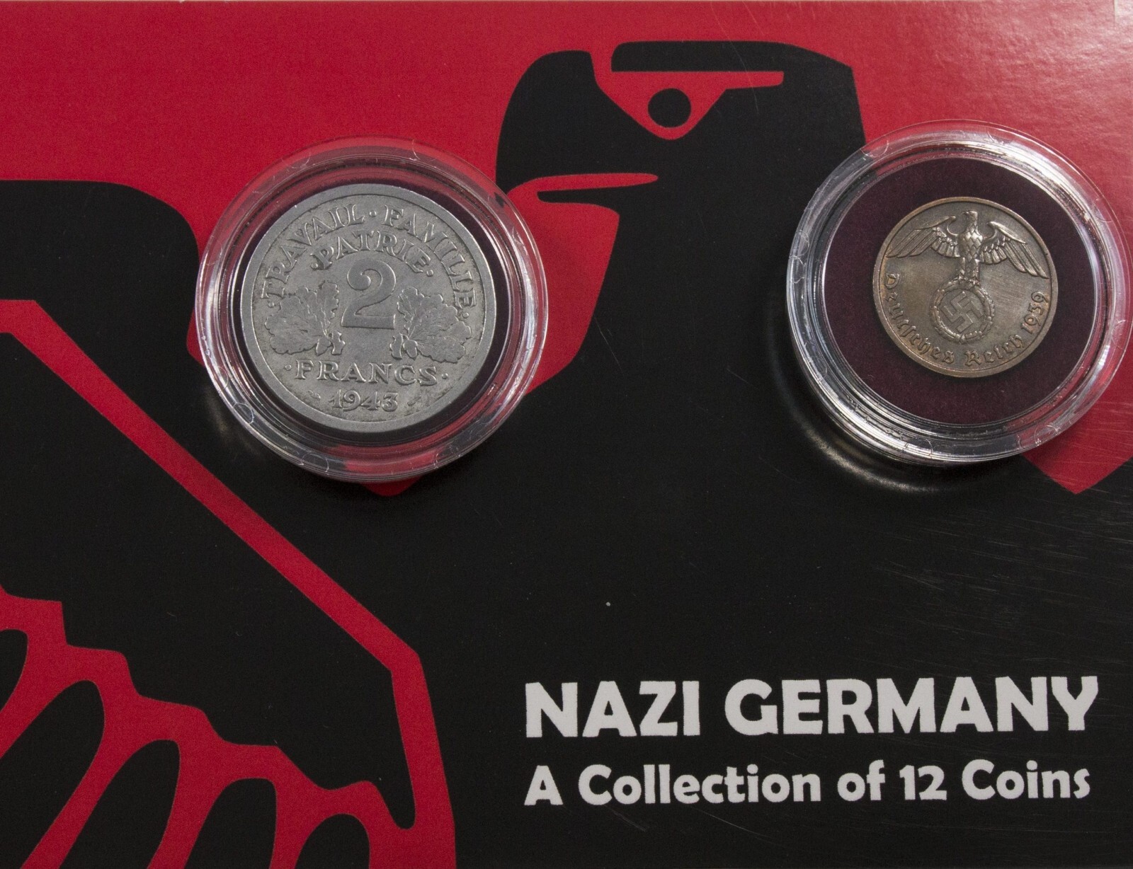 Description: This set contains six Nazi coins that circulated in Germany, as well as six Nazi coins that were used in the occupied countries of Belgium, France, Bohemia & Moravia, and the Slovak Republic. NAZI GERMANY: A Collection of 12 Coins.