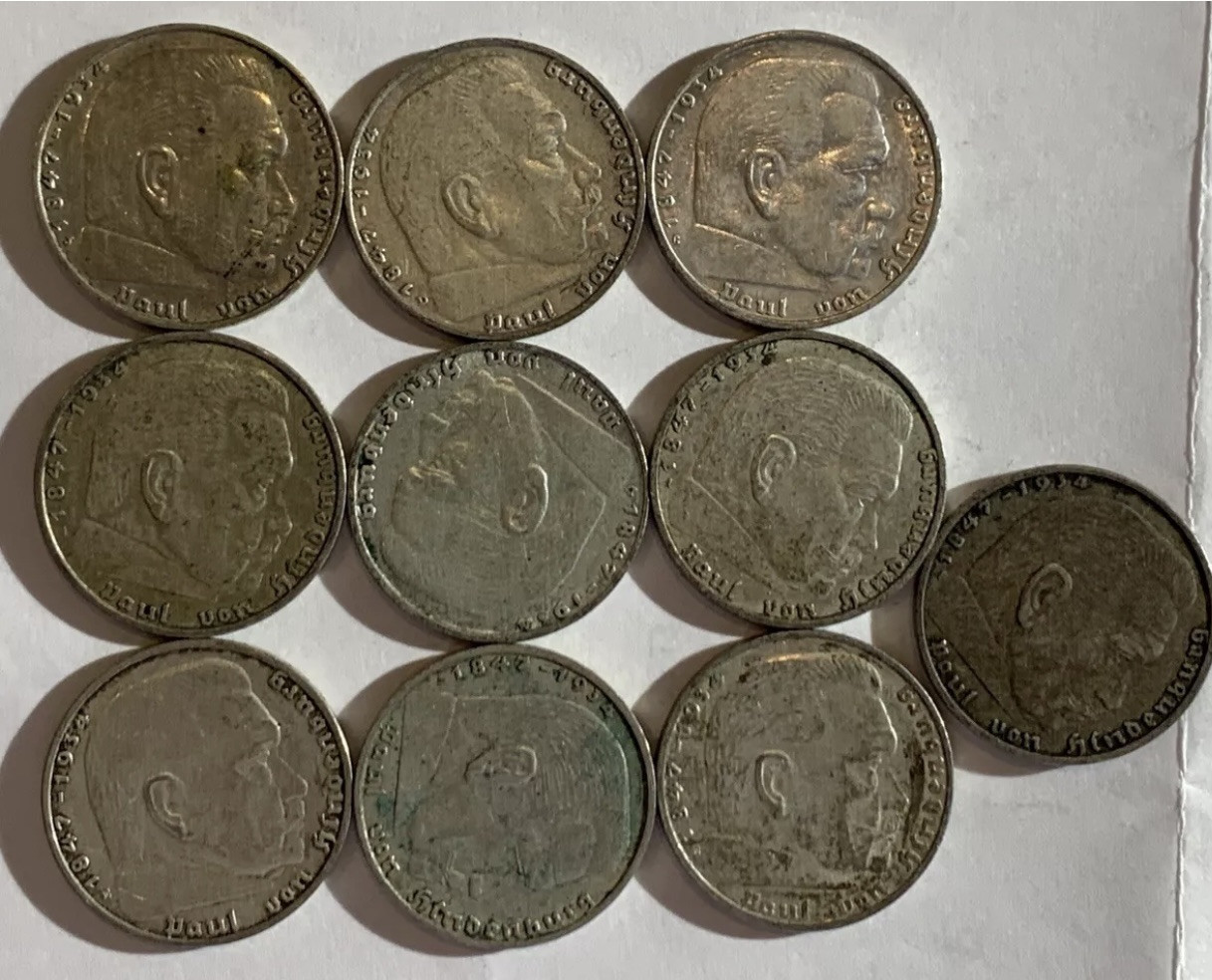 WWII 2 Mark German Silver Coin Third Reich Reichsmark X 10 Coins Lot