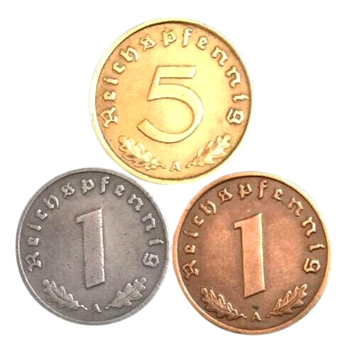 3 VINTAGE GERMAN COINS GERMANY NAZI 10 REICHSPFENNIG AND TWO 1 REICHSPFENNIG