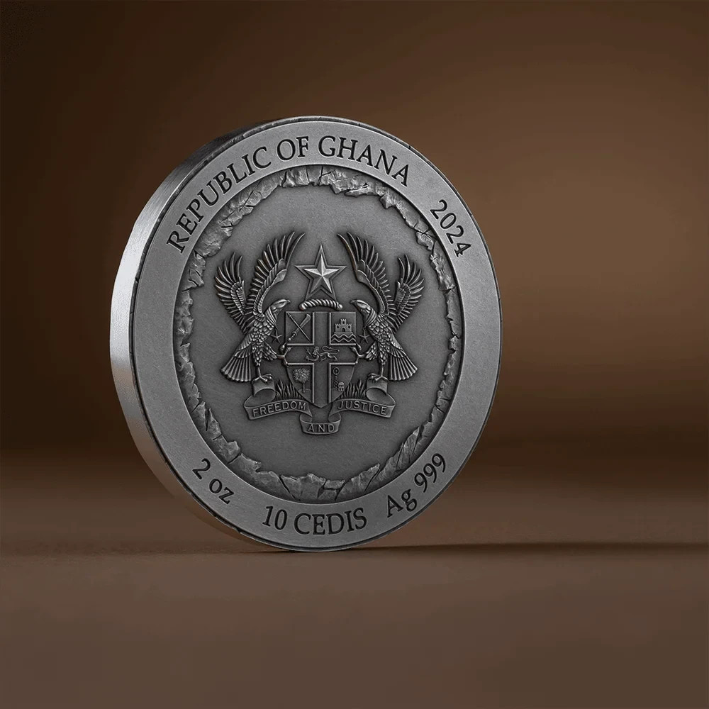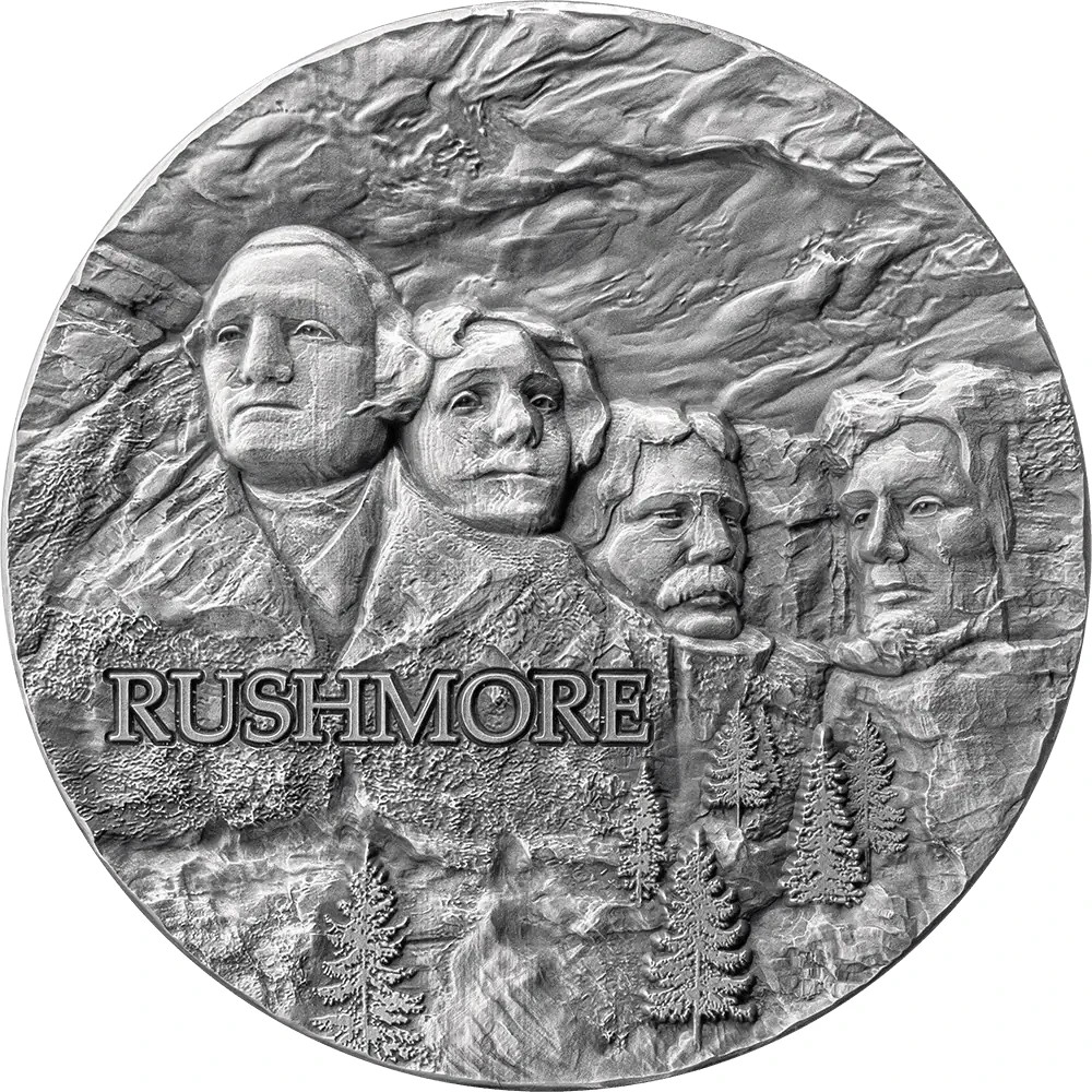 Description: Mount Rushmore awakens the spirit of freedom and bold dreams of leaders who dared to shape a new world. Year of Issue: 2024. Finish: Antiqued High Relief. Issuing Country: Ghana. The item you receive will be similar to what you see but photographing coins or bullion can be quite tricky so we do our best on describing the item.