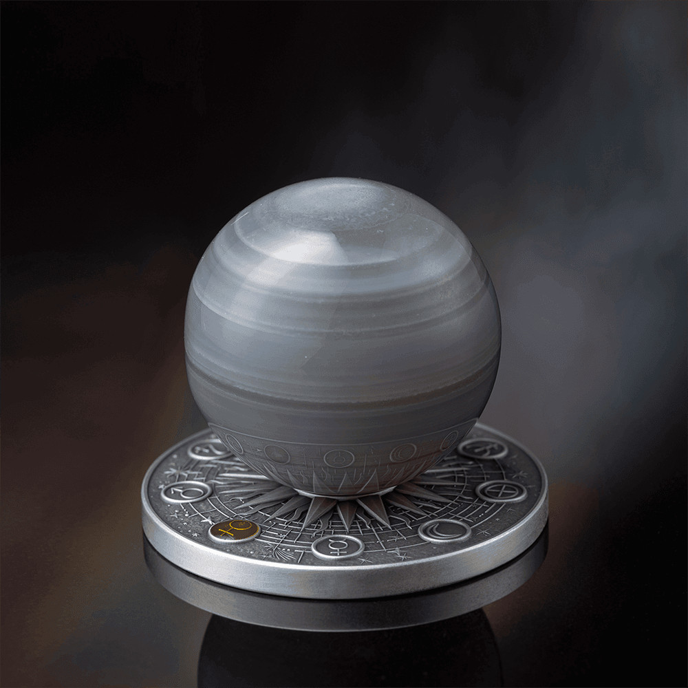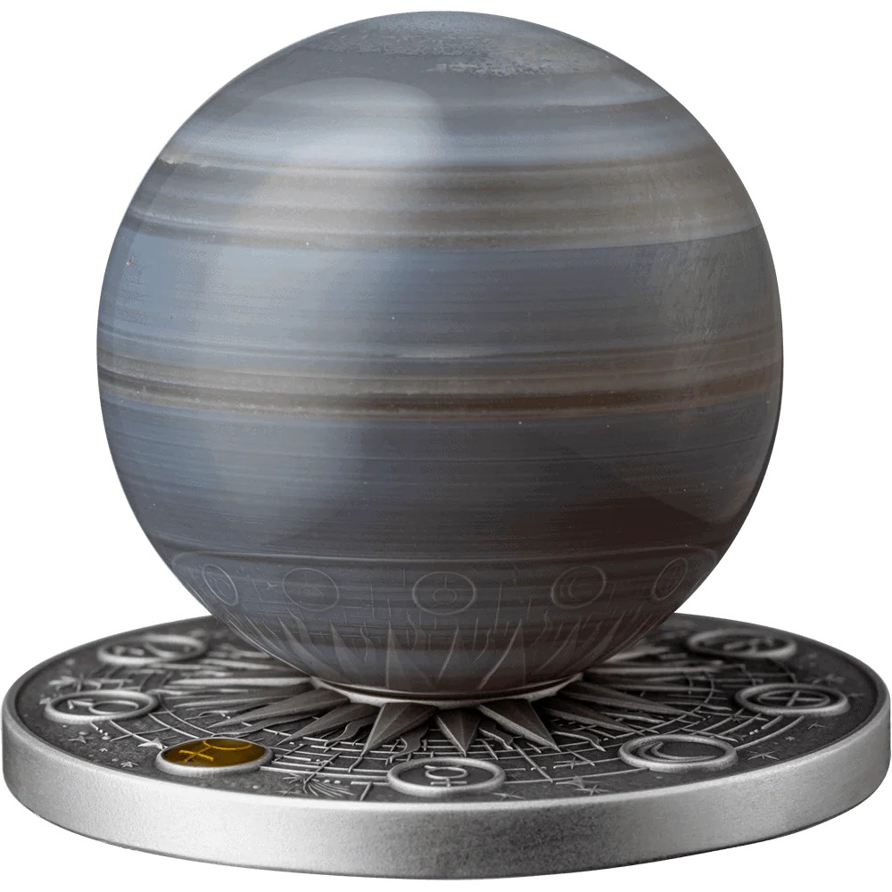 2025 Ghana Solar System Venus 2 oz Silver Antiqued Agate Spherical Coin