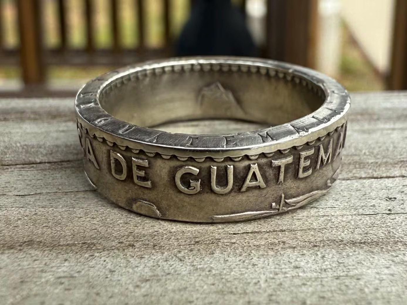Description: Authentic Guatemalan Coin Ring Handcrafted from an authentic 1/4 Quetzal Coin. Sizes 5-12. All rings are hand crafted by me if any special requests please message me.