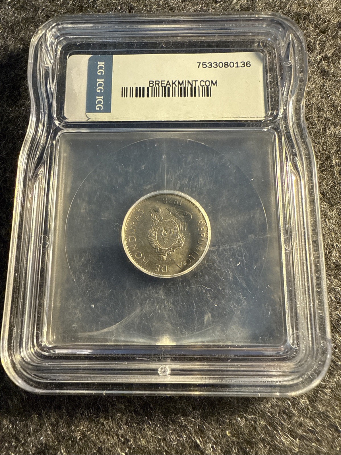 Description: The ICG Genuine Numismatic Expedition 1978 Honduras 20 Centavos Coin is a collectible coin from Honduras, featuring a copper-nickel composition and minted in 1978. This coin has been certified by the International Coin Grading Company (ICG) and is a valuable addition to any numismatic collection. With its unique design and historical significance from the Honduras Numismatic Expedition, this coin is a sought-after piece for collectors interested in world coins from North and Central America.