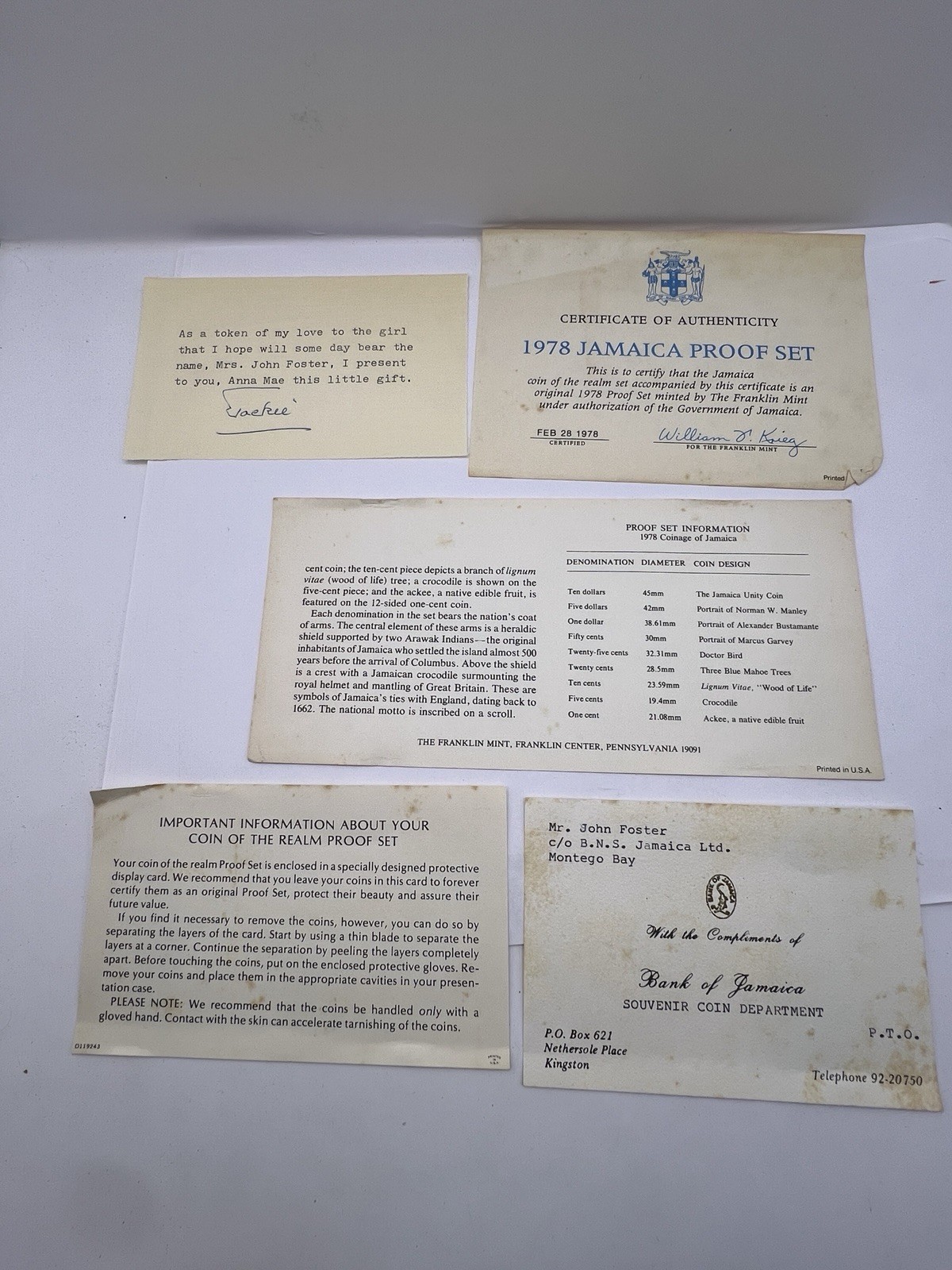 Description: Proof. Two couns is silver. All dicuments original. Full set!