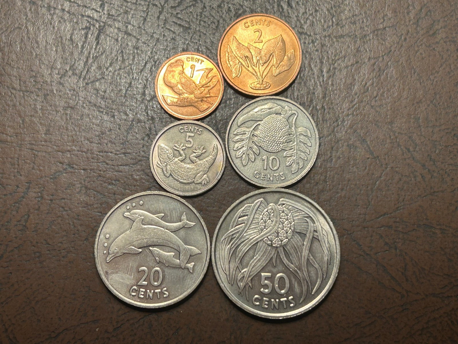 Description: Dive into the numismatic richness of Kiribati with this exquisite set of 1979 coins, featuring denominations of 1, 2, 5, 10, 20, and 50 cents. Each piece showcases the fine craftsmanship of the era, with a copper-nickel bronze composition that adds a distinct luster to the uncirculated coins, preserving their original sheen. Whether you’re a seasoned collector or just beginning, these coins make a valuable addition to any collection. With no certification, these coins remain ungraded, offering a raw and authentic glimpse into Kiribati’s history. The set is a tangible piece of the island nation’s past, minted in 1979 and waiting to be a highlight in your collection.