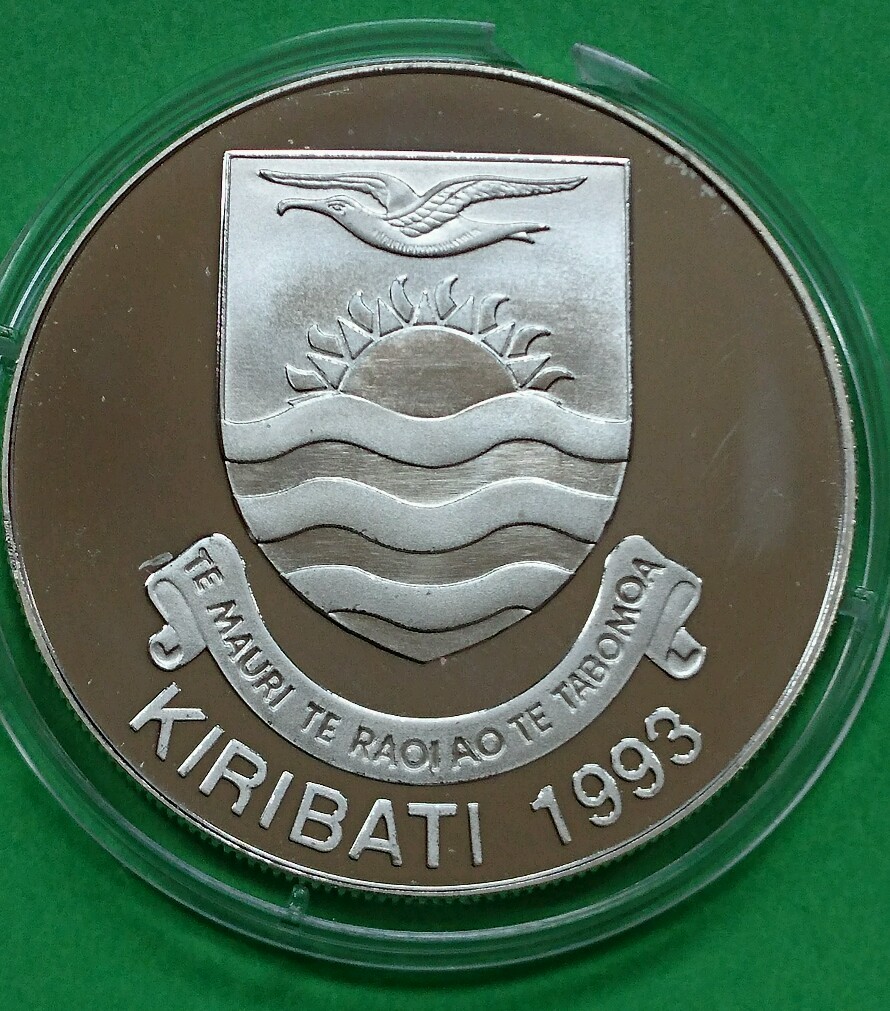 Description: 1993 KIRIBATI Space Exploration Silver Proof Coin. Coin is a SILVER PROOF-Highest quality struck coin using highly polished dies and blanks, struck more than once to produce a fine detailed frosted image with a mirror like field.