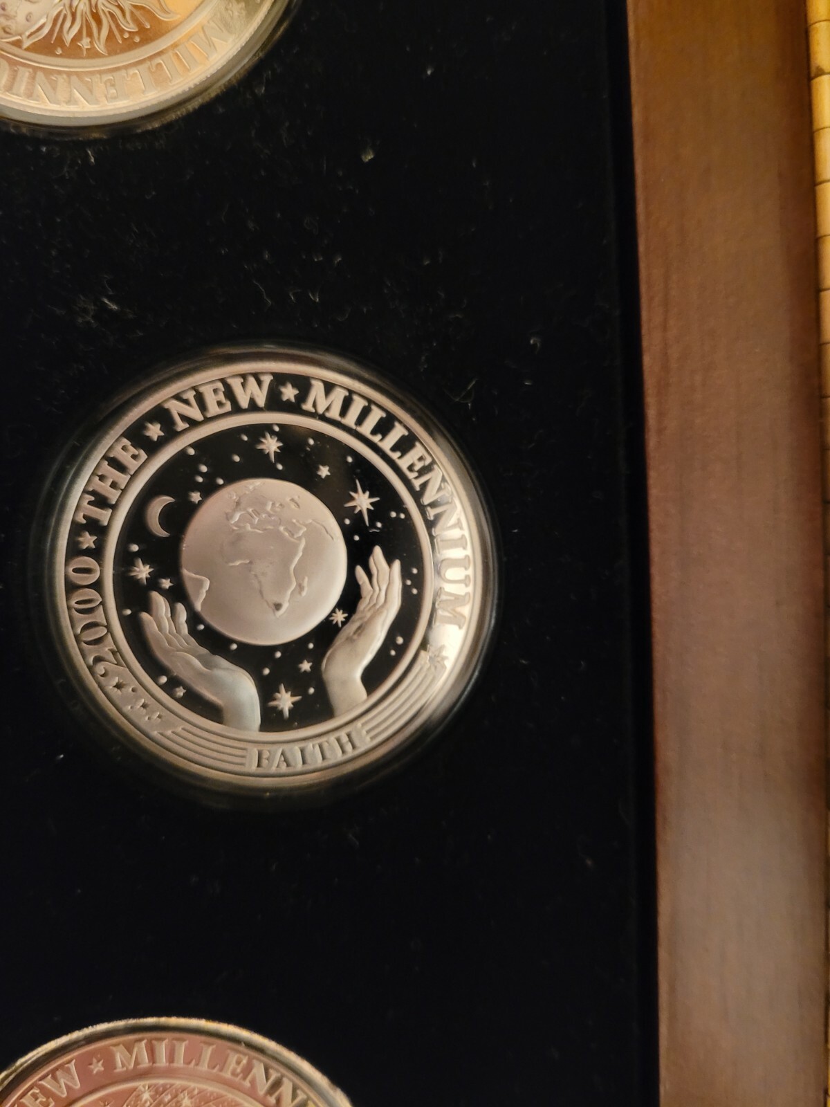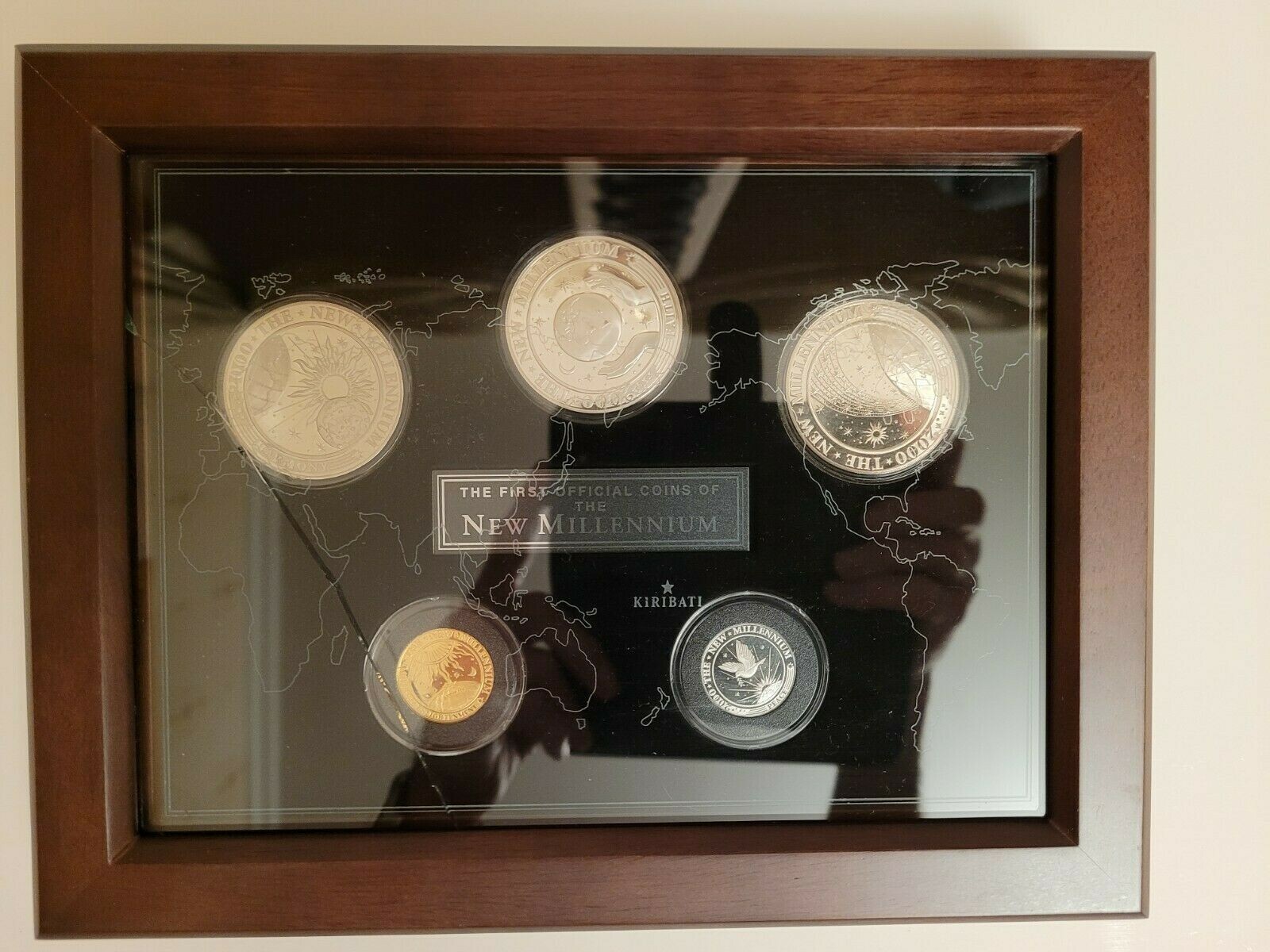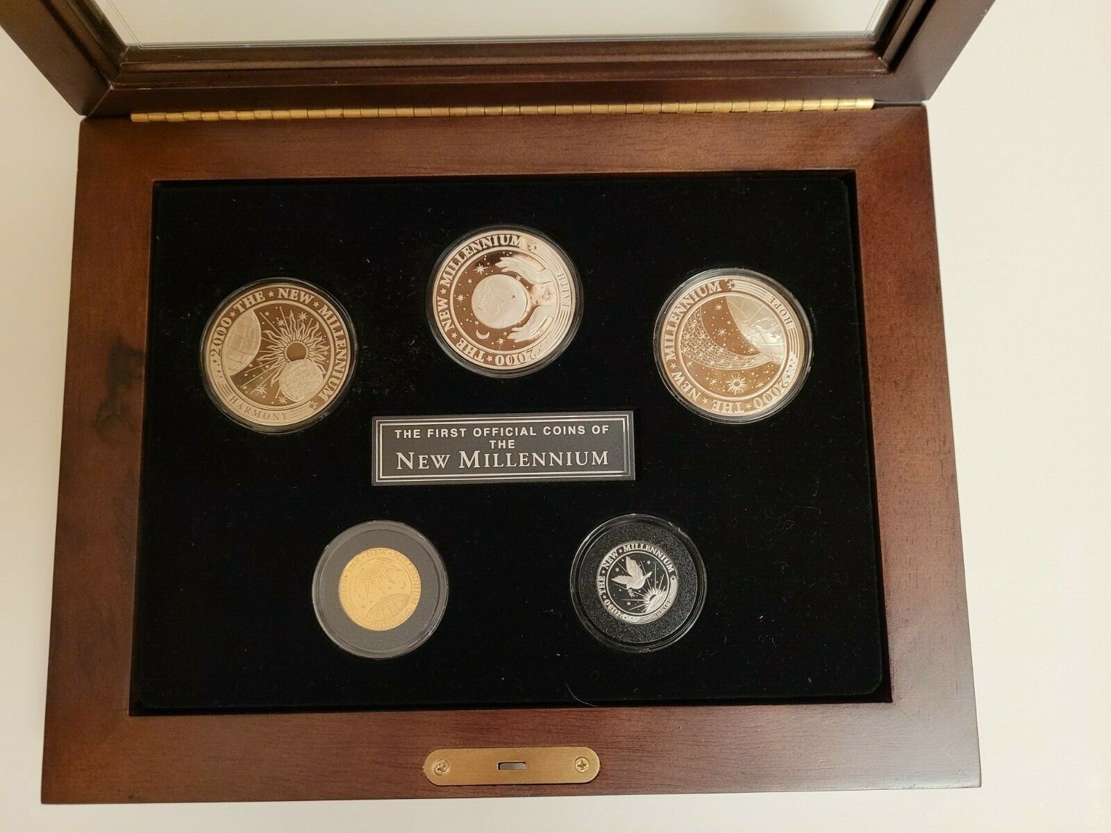 Description: 2000 KIRIBATI THE FIRST OFFICIAL COINS OF THE NEW MILLENIUM 5 PROOF COIN SET. MINTED BY FRANKLIN MINT # 598 OUT OF 2000 SETS MINTED. ALL COINS ARE UNTOUCHED.