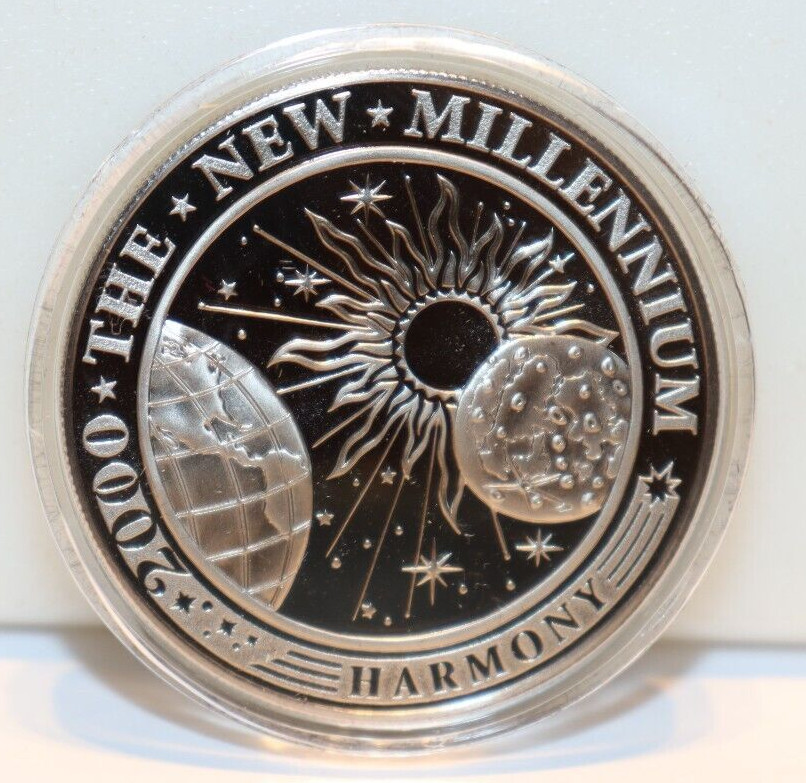 Description: 2000 Kiribati $5 Coin New Millennium Harmony Proof Mintage 2000 Copper Nickel