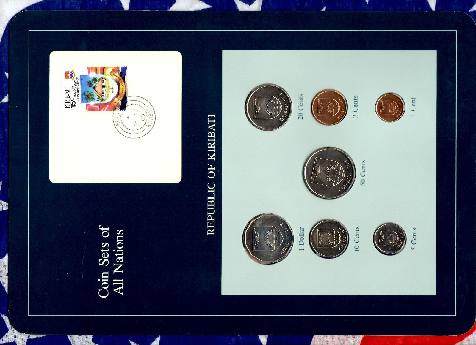 Description: Republic of Kiribati. UNC coin set. Coin Sets of All Nations Collection. “Coin Sets of All Nations” series. This highly collectible set includes one of each coin, MINT and possibly uncirculated, preserved behind plastic inside a thick cardboard display.
