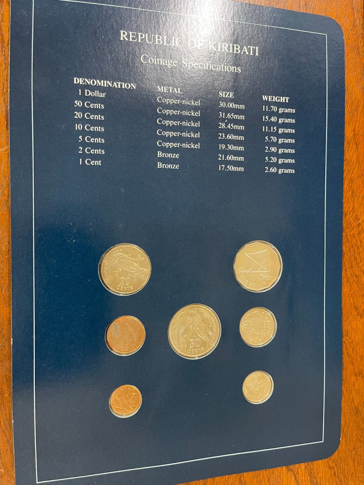 REPUBLIC OF KIRIBATI COIN SETS OF ALL NATIONS ( 7 UNCIRCULATED COINS and STAMP )
