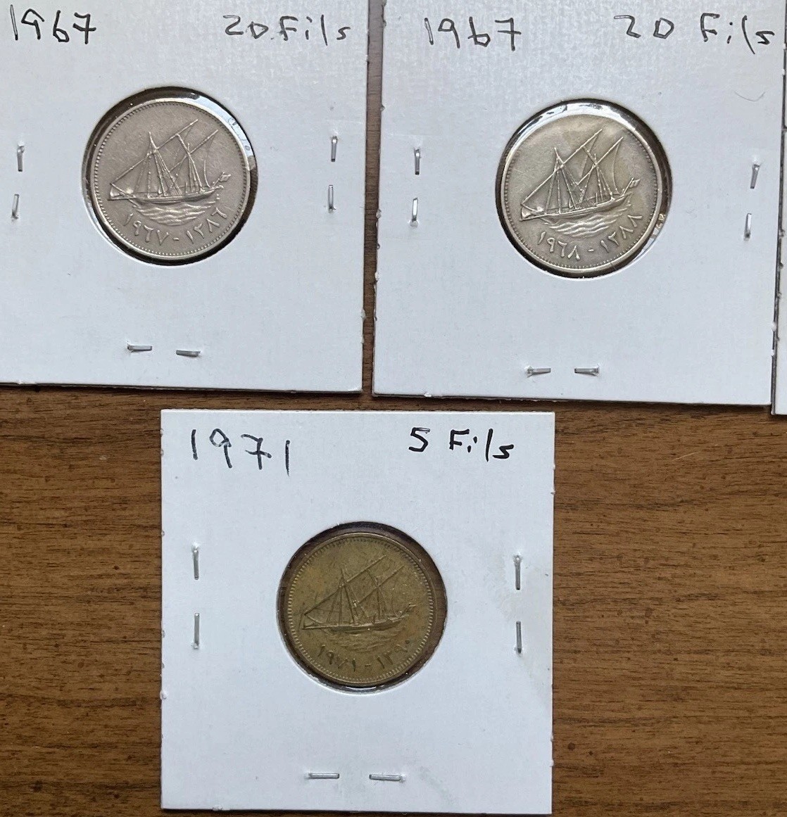 2 Old world coin lot KUWAIT 50 fils 1961 KM6 "Sailboat" (89)