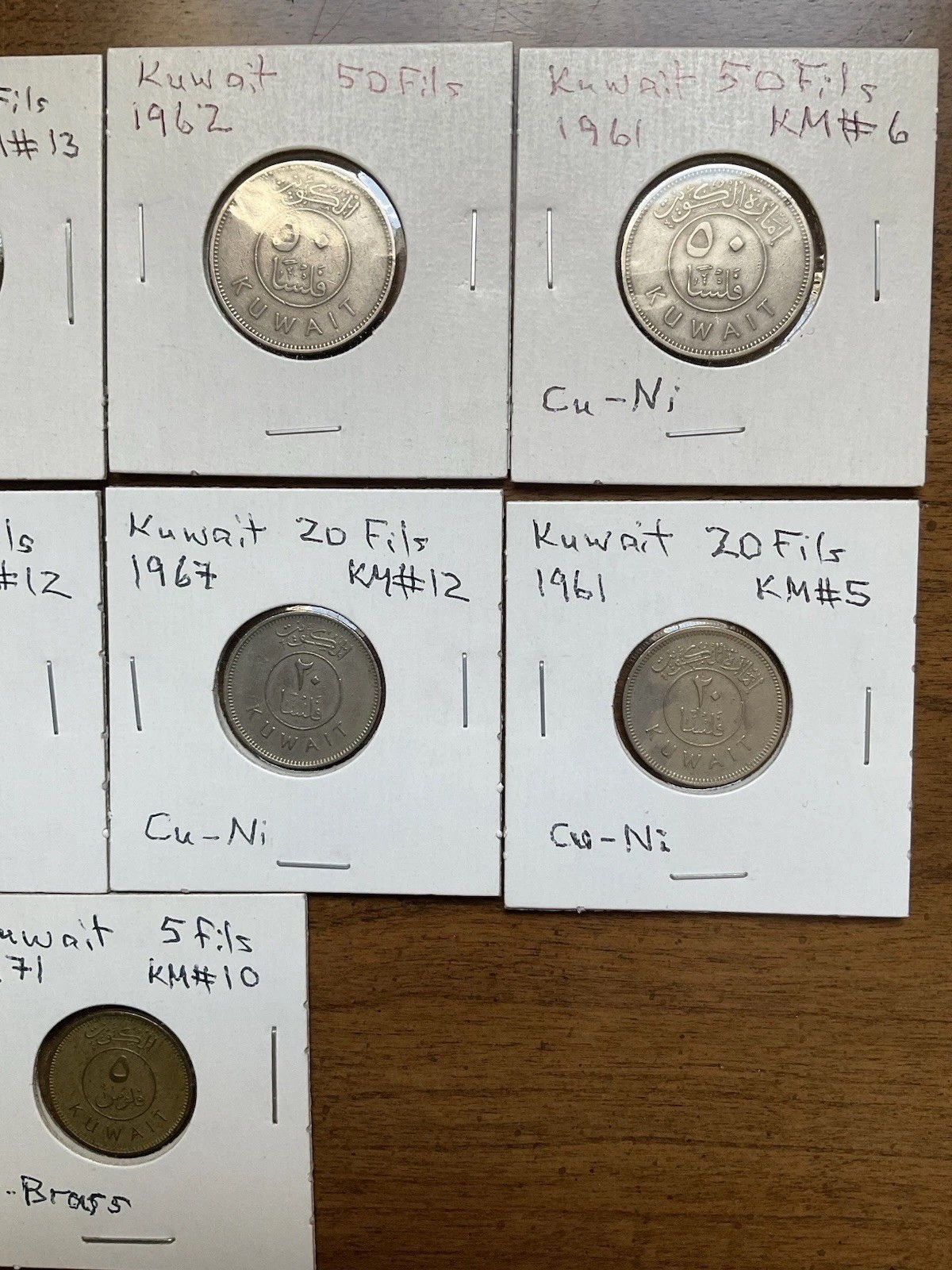 Kuwait 9 Coin Lot 1961-1971 50 20 and 5 Fils KM5 KM6 KM10 KM12 KM13