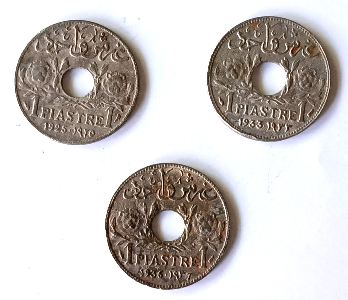1925-1941 LEBANON LOT OF THREE COINS 1 2-1/2 5 PIASTRES