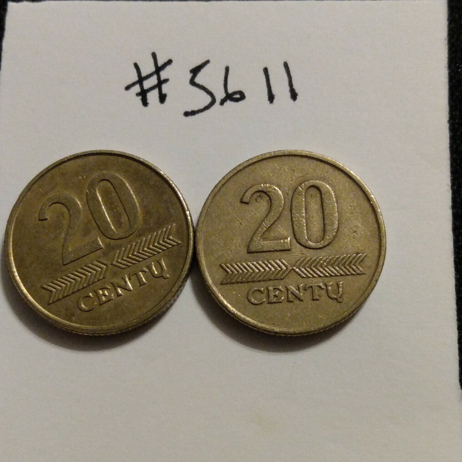 4 Lithuanian Coins: 10 20 Centu 5 Centai 1991