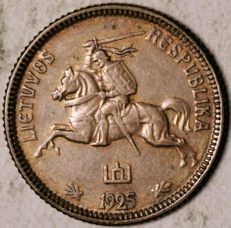 1925 Lithuania 50 Centu Aluminum-Bronze Coin - AU (About Uncirculated) condition