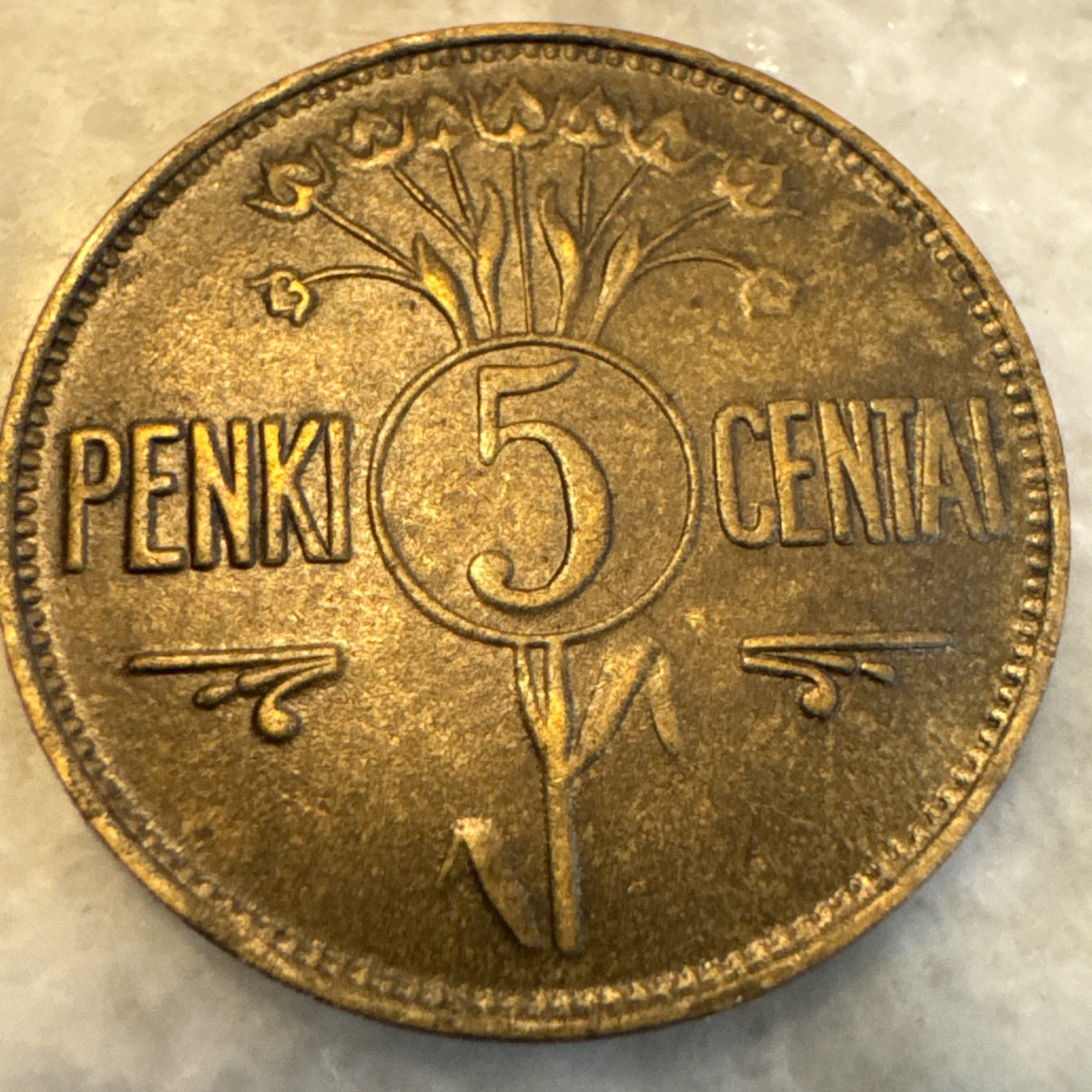 1936 Lithuania 5 Centai (KM-81) Bronze [one-year issue]