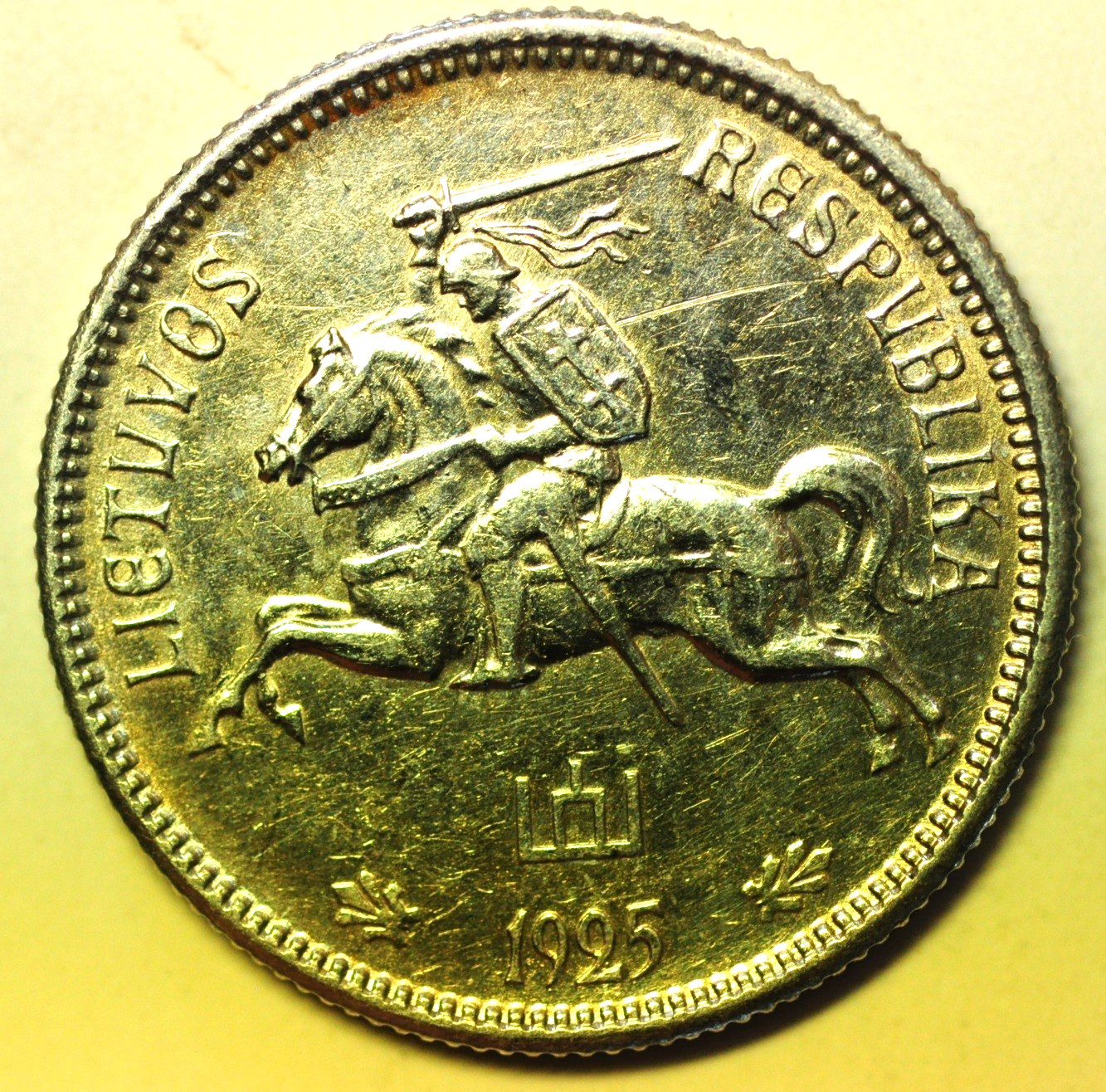 1925 Lithuania Five 5 Litai AU Light Hairlines