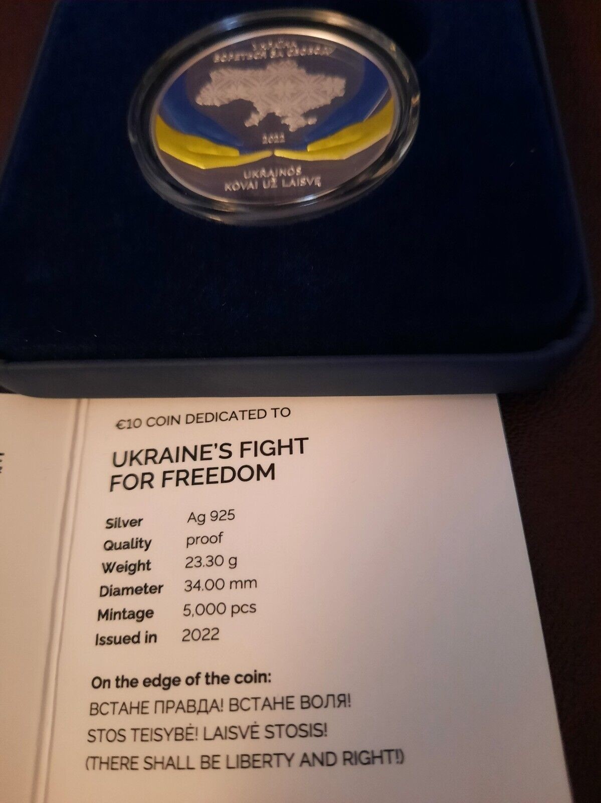 Description: EDGE SCRIPT IN UKRAINIAN AND LITHUANIAN ” THERE SHALL BE LIBERTY AND RIGHTS “. STRIKE PROOF. SILVER 925. WEIGHT 23.3 G.