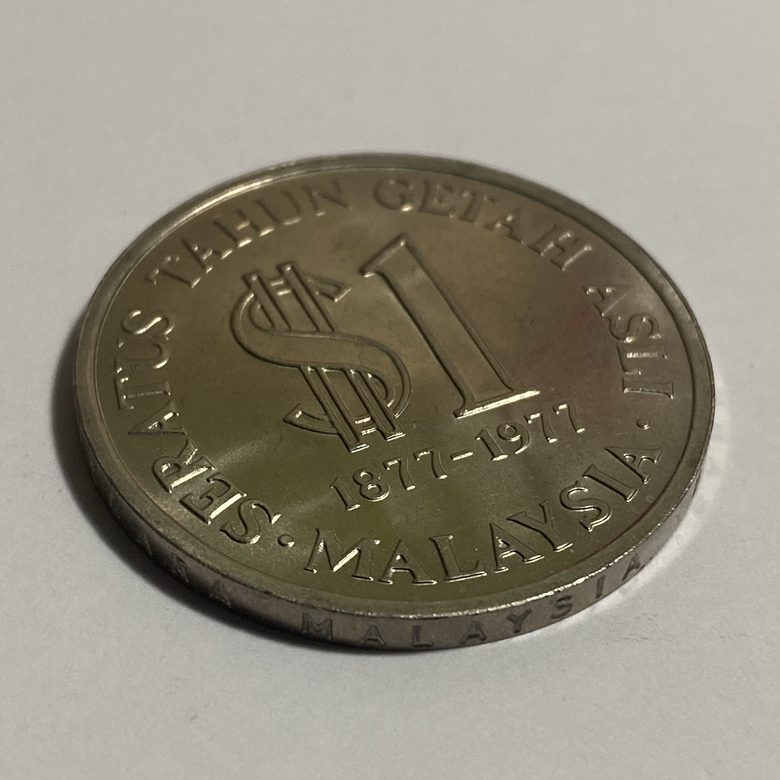 Description: The product is a circulated Malaysia 1 Ringgit coin from 1977, commemorating the 100th anniversary of natural rubber production. This copper-nickel coin has a KM number of 26 and is uncertified. It is a collectible piece from Malaysia’s history, highlighting the country’s significant contribution to the production of natural rubber. 16.92 grams