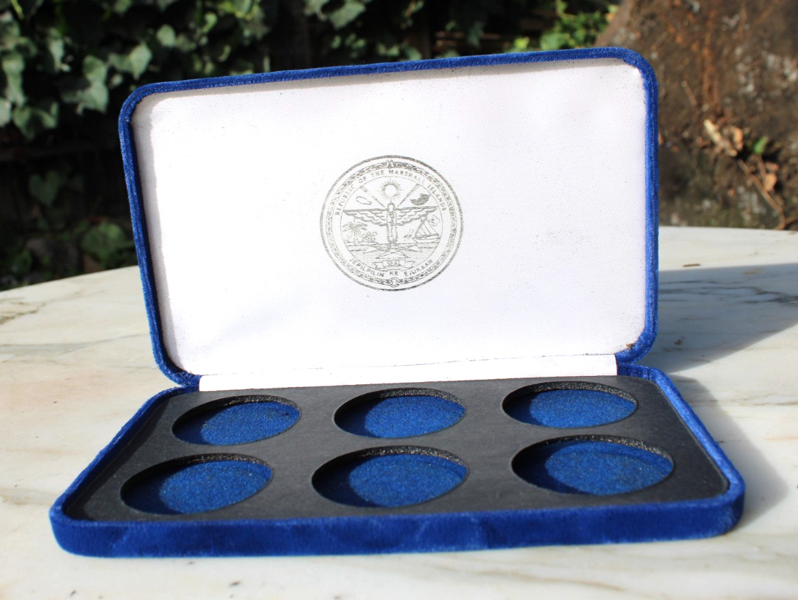 Description: 1995 Marshall Islands 6-Coin Set “Empty” Case. Coins not included here. Sold individually. Snap Hinged Box. See all photos.