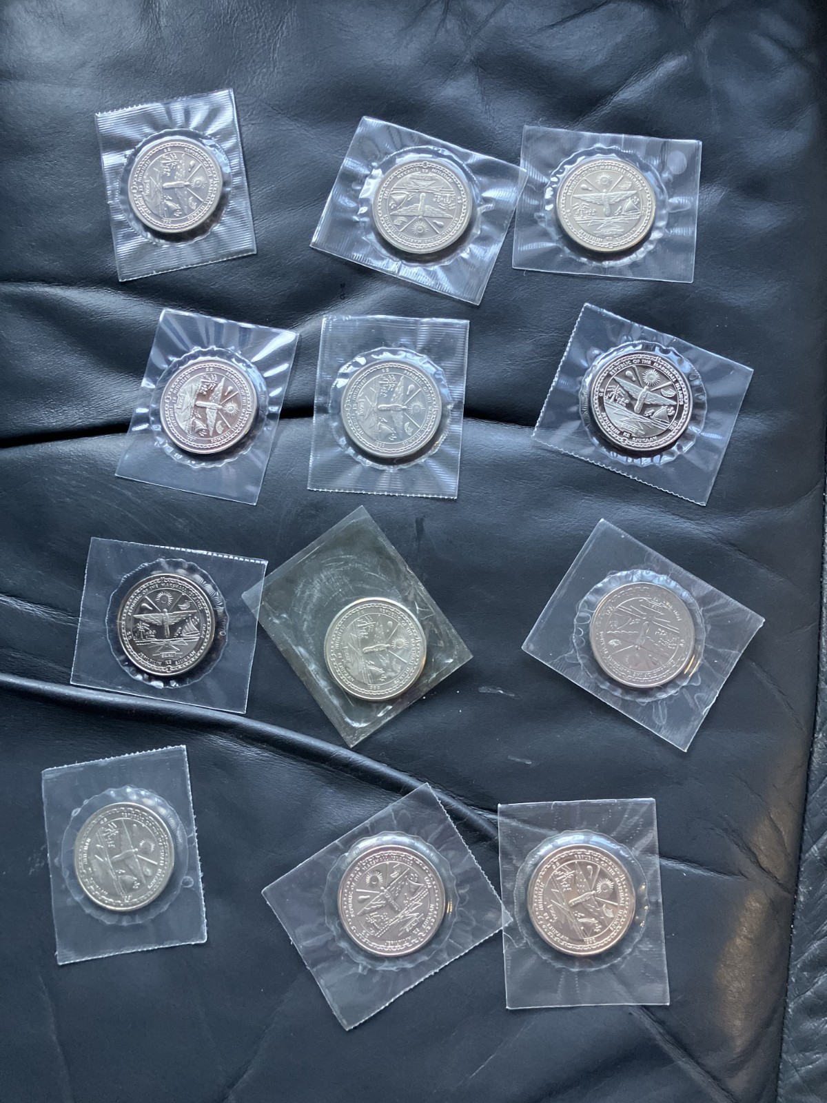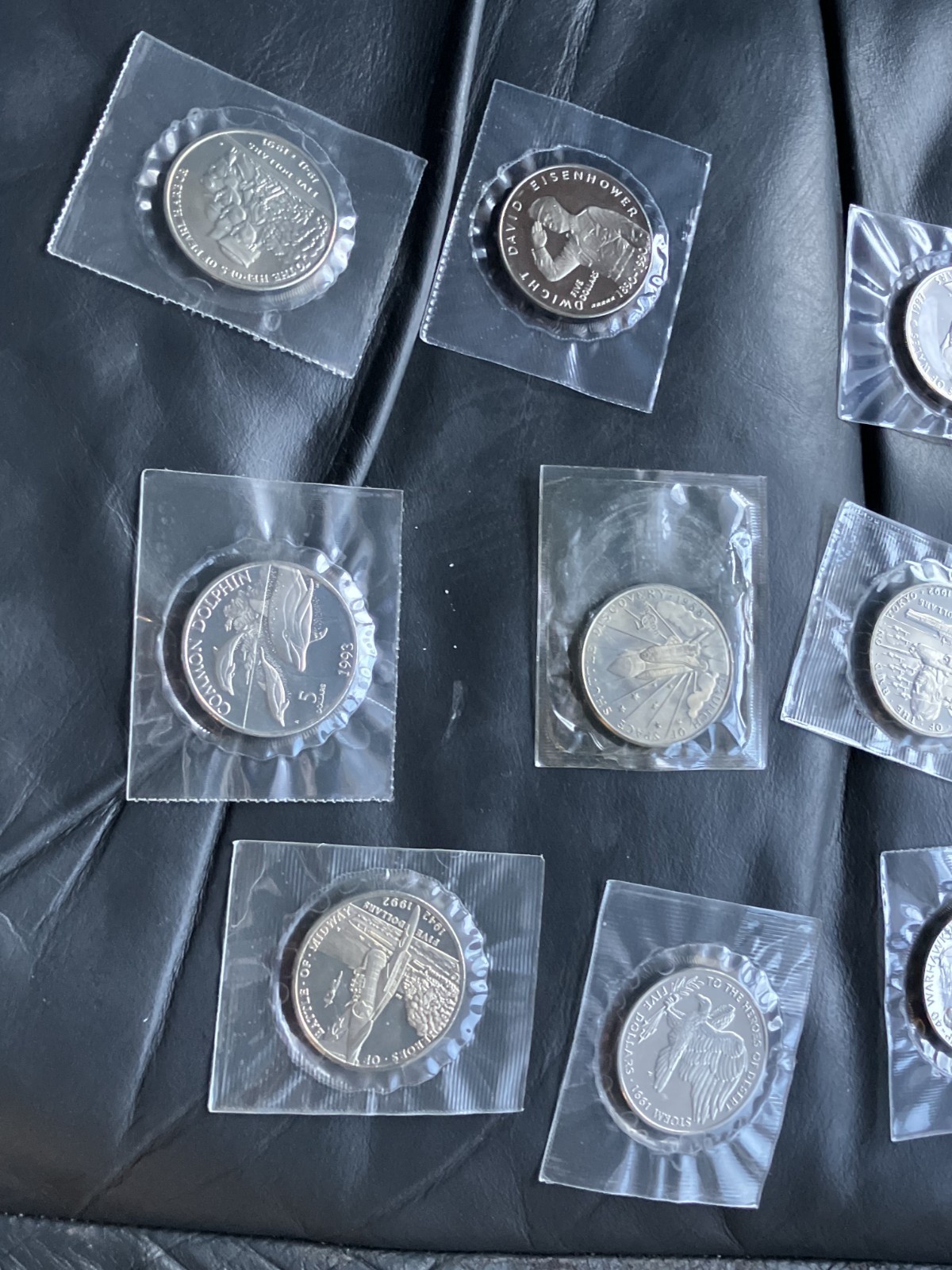 republic of the marshall islands coin collection UNC: 12 coins total Current Price: 90,00 USD Location: United States Type: Fixed Price Description: More like this:1991 $50 Silver Marshall Islands Aircraft of WWII - 8 coins1989 First Men on the Moon $5 Commemorative Coin Marshall Islands Apollo 11 KM131993 ELVIS PRESLEY $5 Commemorative Coin in Original Folder ~ Marshall Islands1989 Marshall Islands $5 Space Shuttle Discovery Commemorative Coin #18 NASAMarshall Islands $5 Dollars Heavenly Angels Christmas Commemorative Coin Lot X 61989 MARSHALL ISLANDS 20 TH ANNIVERSARY FIRST MEN ON THE MOON FIVE DOLLAR COINMarshall Islands First Men on the Moon $5 Commemorative Coins All 5 For $251997 Marshall Islands $5 Coin "Sermon on the Mount" Commem in Pres. Folder2 Republic of the Marshall Islands $5 First men On The Moon Commemorative CoinFirst Man on the Moon- Five Dollar Coin 1989 (Republic of the Marshall Islands)-1992 Marshall Islands $5 Desert Storm Coin1993 MARSHALL ISLANDS $5 HUMPBACK WHALE PACIFIC WHALES WILDLIFE CuNi (no silver)1991 MARSHALL ISLANDS $5 DOLLAR COIN "TO THE HEROES OF DESERT STORM" UNC/SEALEDVintage Coin Marshall Islands 1997 5 Dollars Christmas Cherubs Angels KM# 403Marshall 1991 Desert Storm Eagle 50 Dollars 1oz Silver Coin ProofMarshall Islands 1988 $25 Deep Cameo Silver Proof Coin Greg Louganis Perfect 101997 Heroes of Korean War $5 Commemorative CoinRepublic Of the Marshall Islands 1993 Germany United Commemorative Coin Lot Mint(25) Republic Of The Marshall Islands Battle Of Britain $5 Commemorative CoinsLot Of 8 1980’s and 90’s Republic Of The Marshall Islands Commemorative CoinsLot of 13 Marshall Islands Commemorative Coins WW2 Churchill Desert StormGermany United $5 Commemorative Coin - Marshall Islands 1990First Men on the Moon $5 Commemorative Coin - Republic of the Marshall IslandsTwo Marshall Islands Heroes Of The Vietnam War $5 Commemorative Coins 19951990 and 1991 Republic of Marshall Islands $5 Dollar Sealed Commemorative CoinsMarshall Islands 5 Dollars Coin 1995 KM# 253 Marilyn Monroe Five UNC1990 Marshall Islands $5 Five Dollars Battle of Britain Commemorative Coin1990 Marshall Islands $50 Silver Eisenhower Commemorative Proof Coin DCAMMarshall Islands Milestones of Space Exploration $50 Proof Coins .999 SilverMarshall Islands $5 Coin Commemorating the First Man on The Moon. Lot of 31991 Marshall Islands $5 Heroes of Desert Storm Commemorative Coin Sealed1988 Marshall Islands Space Shuttle Discovery $5 Commemorative Coin - Gem in OGP1990 and 1991 Republic of Marshall Islands $5 Dollar Sealed Commemorative Coins1997 Marshall Islands $10 Coin "African Elephant" Commemorative in Pres. Folder1995 Marshall Islands $5 Dollar Commemorative Coin **F-100 Super Sabre** SEALED1989 Marshall Island First Men On The Moon 5 Dollar Proof Coin1990 Marshall Island Battle of Britain .999 Proof Silver Coin - SHIPS FREE!1991-R $5 Marshall Islands Heroes Deset Storm PCGS MS68 .999 Silver 1 oz.Marshall Islands Milestones of Space Exploration 24 oz .999 Silver Proof Coins1989 Marshall Islands First Men on the Moon $5 Coins Lot of 5MARSHALL ISLANDS WHALES and DOLPHINS $10 BRASS COINS BAIJI DOLPHINVintage Coin Medal Medallion Collection From EstateHeros of Desert Storm $10 COMMEMORATIVE COIN REPUBLIC OF MARSHALL ISLANDSRARE Set of 12 1993 $10 Coins of Marshall Islands Whales and Dolphins in Pacific1988 $5 Launch of Space Shuttle Discovery Marshall Islands Commemorative Coin BU4 Marshall Islands $50 Large .999 Silver Coins 2 $10 and 2 $5 coinsMilestones Of Space Exploration Marshall Islands 24 Silver Coins1988 Marshall Islands Launch Of Space Shuttle Discovery $5 Coin1988 Marshall Islands 5 Dollars Space Shuttle Discovery Coin UNC1989 First Men on The Moon $50 Marshall Islands Silver Proof OGP and COA Tags: Marshall Islands coins Read more articles Previous Post1989 Marshall Islands Silver Proof First Men on the Moon Fifty 50 Dollar Coin Next Post1988 Marshall Islands 5 Dollars The Space Shuttle Discovery Commemorative Coin