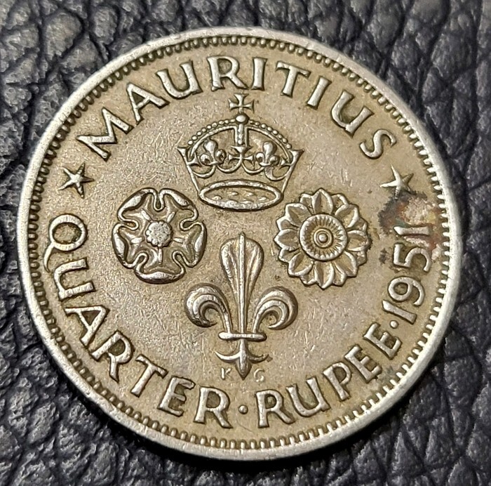 1946 Mauritius Quarter Rupee 50.0% Silver