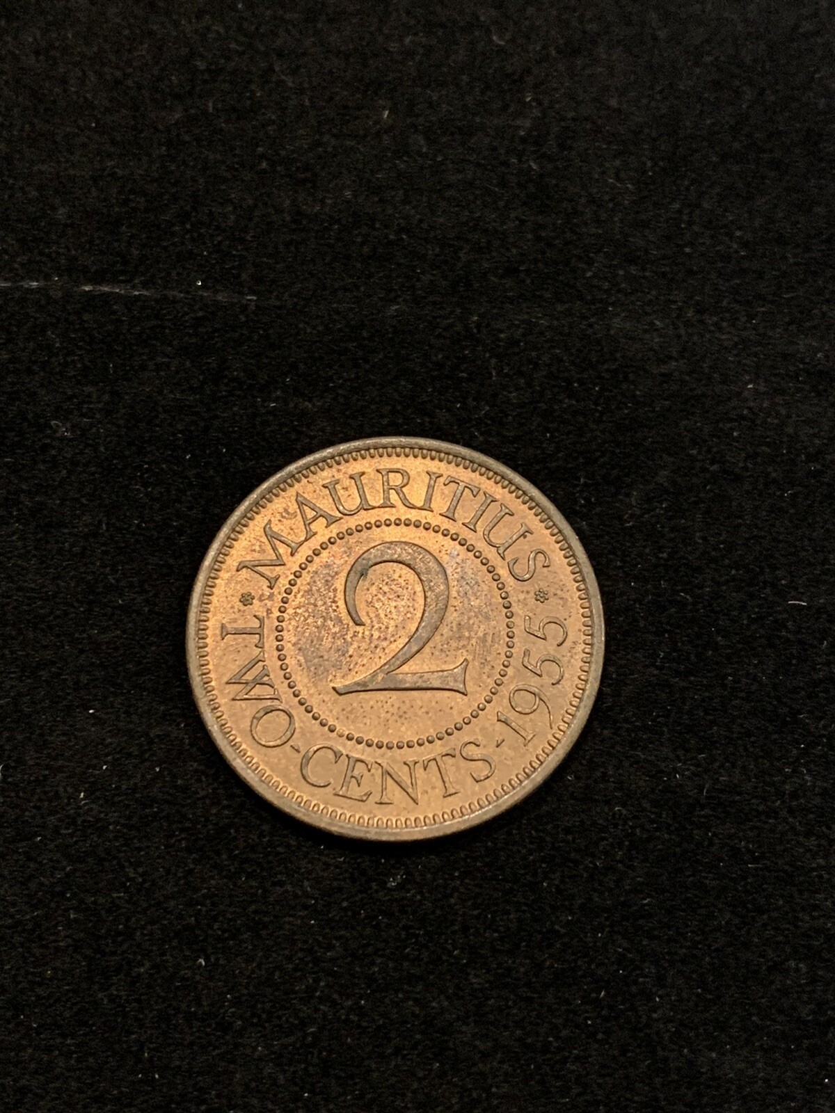 Description: 1955 Mauritius 2 Cents – Nice grade – Combined shipping. Shipped with USPS First Class.