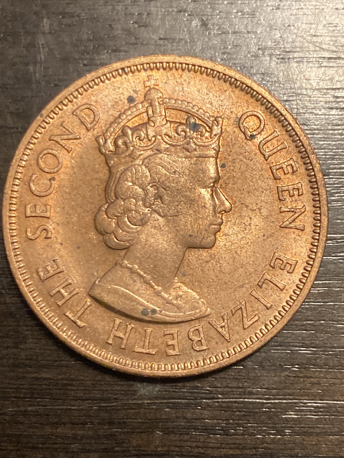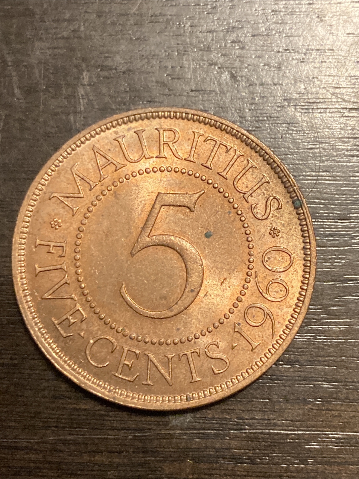 Description: 1960 Mauritius Five Cents. Circulated and ungraded