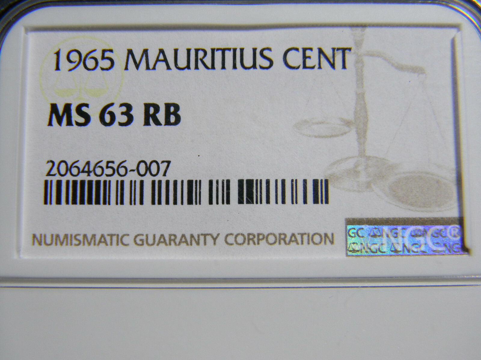 1949 MS66 RD Mauritius 2 Cent KM 26 NGC TOP GRADE! KING GEORGE VI