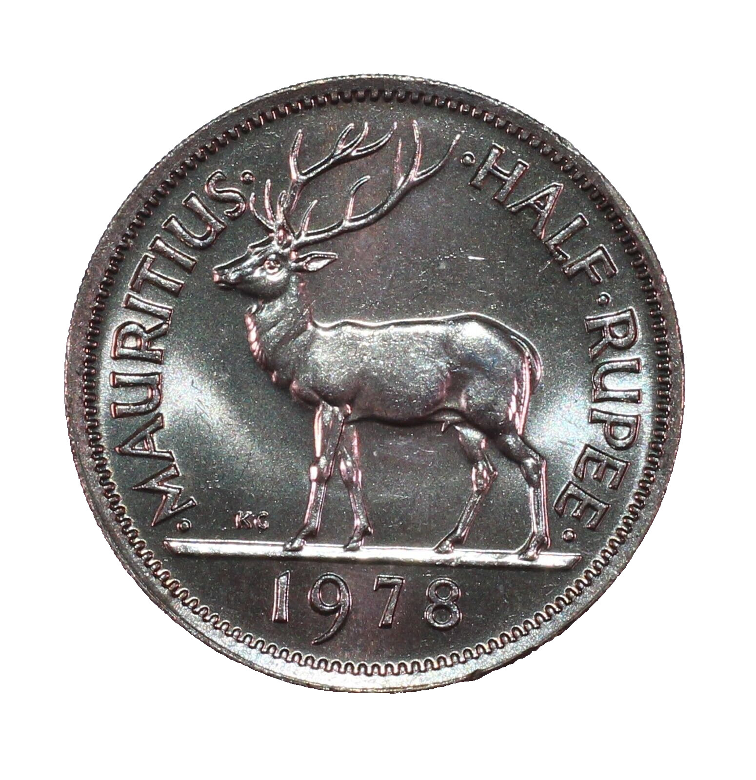 Description: This is a 1978 Mauritius 1/2 Rupee in BU condition. It is listed as KM37.1 and was struck in a Copper-Nickel alloy. The coin in the pictures is the one you will receive. Take a look at the pictures and judge for yourself.