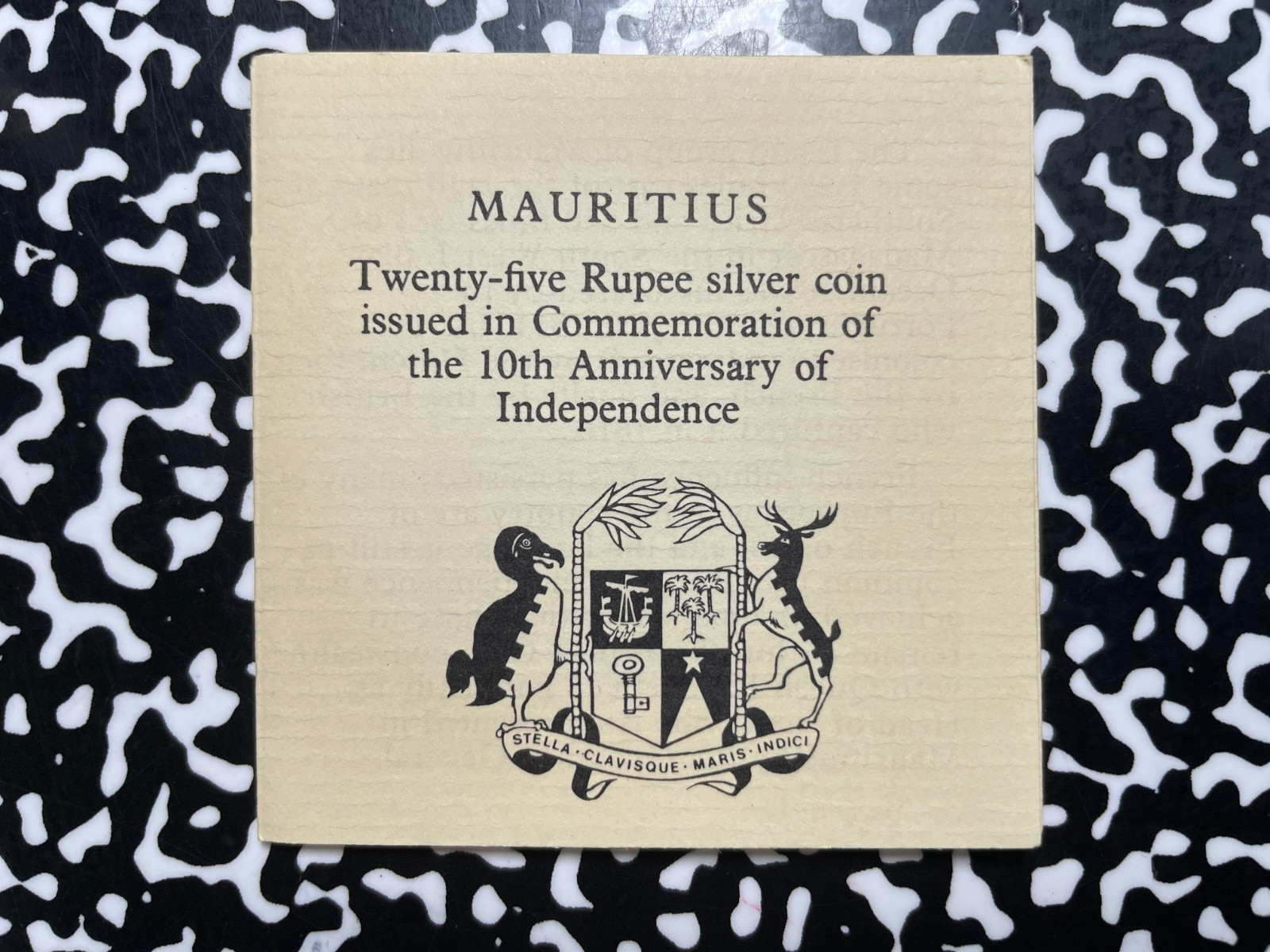 1977 MAURITIUS SILVER 25 RUPEE * ORIGINAL PACKAGING * .500 SILVER * KM 43