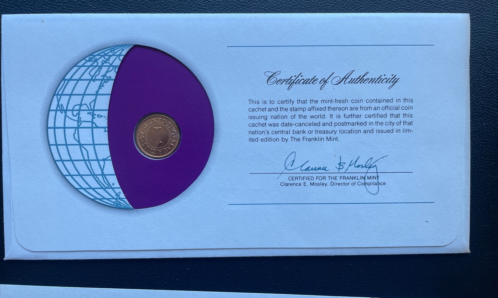 Description: 1979 Mauritius Coin – Franklin Mint COA – Coins of All Nations Uncirculated See photos, will be shipped in standard envelope