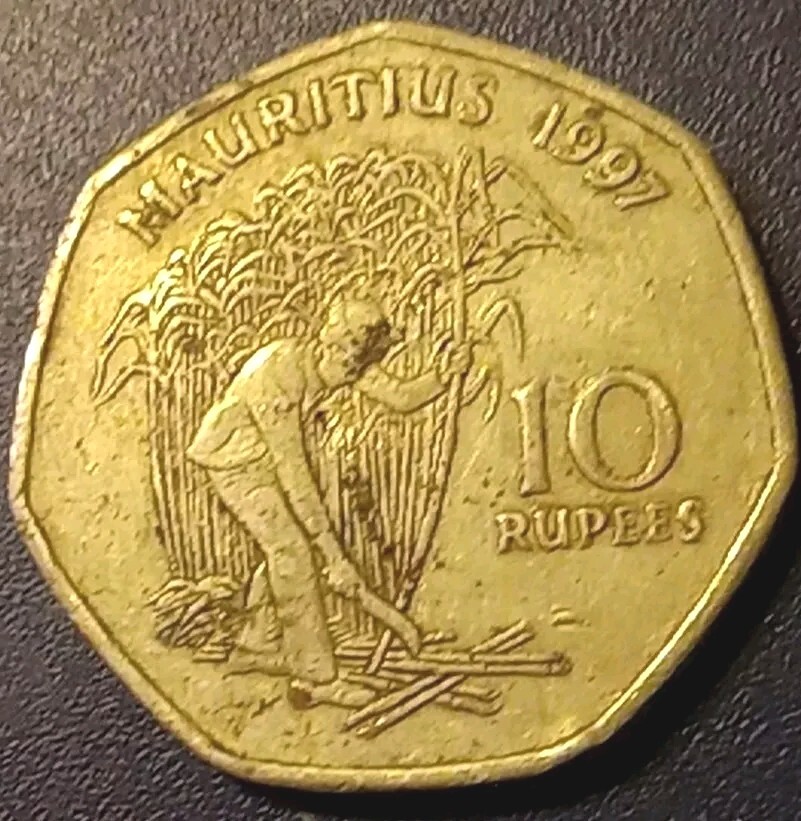 Description: Authentic 1997 Mauritius Ten RUPEES COIN – Circulated Big 7 sided edge Thanks for looking! Mauritius 10 rupees 1997 mint circulated history