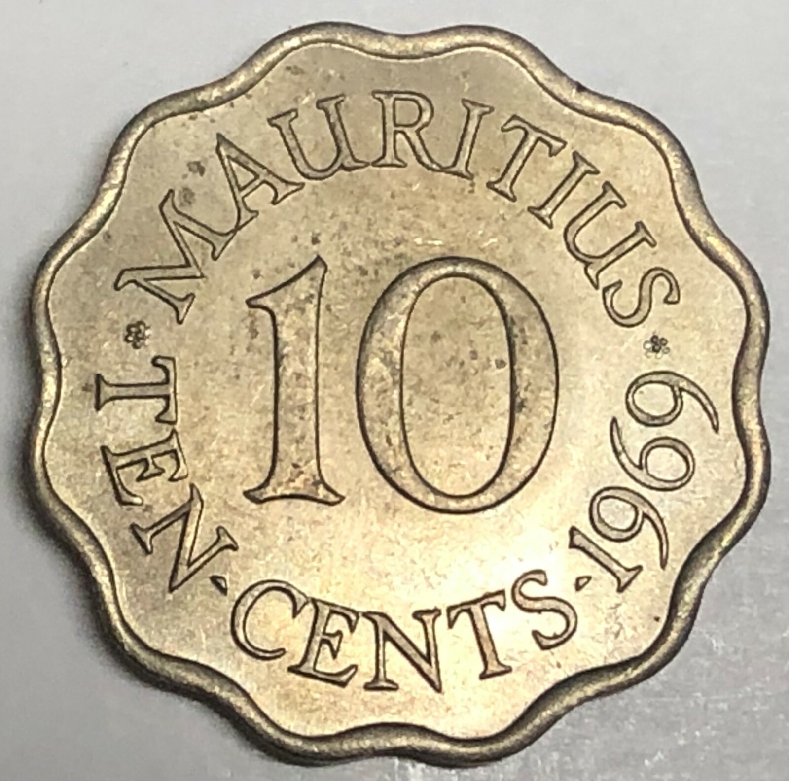 Description: 1969 MAURITIUS 10 CENT COIN: The coin you see is the coin that you will receive.