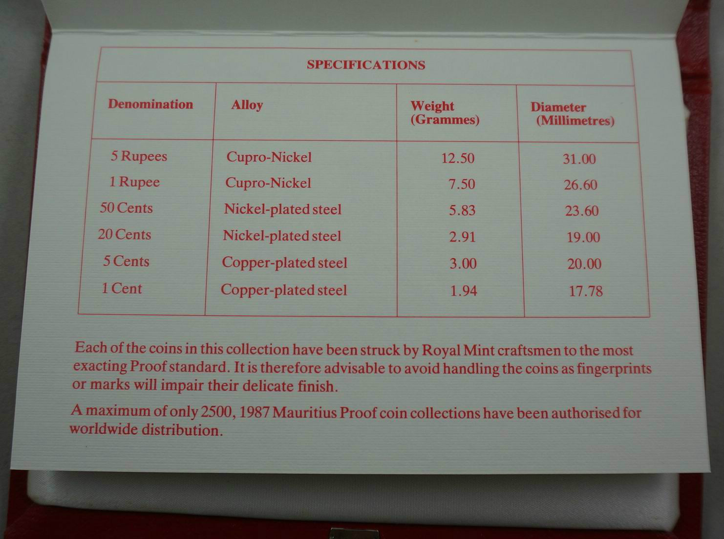 Coin Sets of All Nations Mauritius 1978 UNC 1/4 1/2 1 Rupee 10 5 2 1 Cents