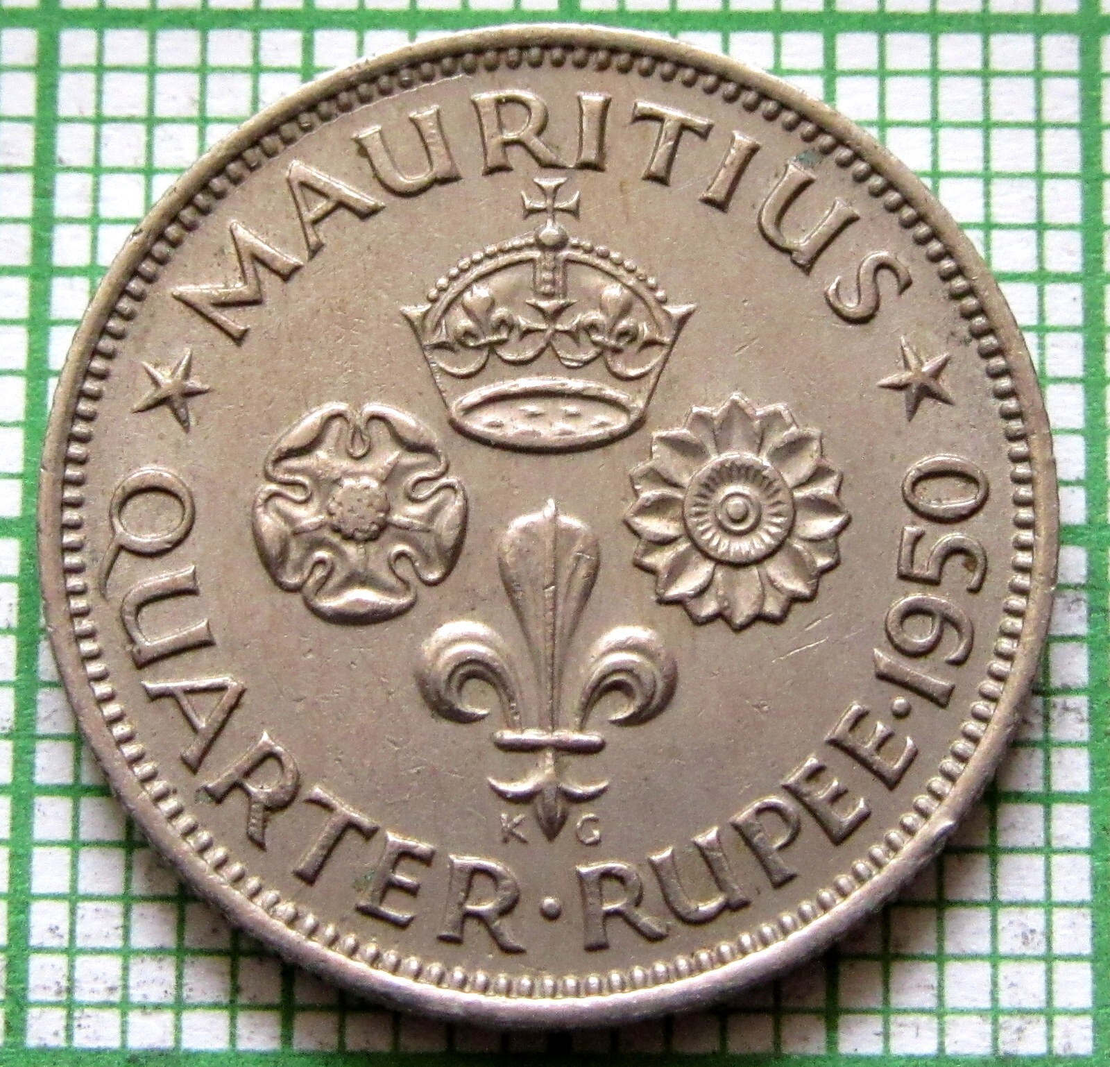 Description: THIS IS MAURITIUS King GEORGE VI 1950 QUARTER 1/4 RUPEE. Shape Round. Demonetized Yes. Technique Milled.