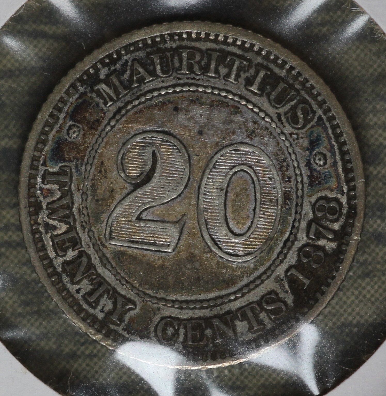 Mauritius 1899 20 Cents KM11.1 silver .0600 oz EF a few marks 3-11