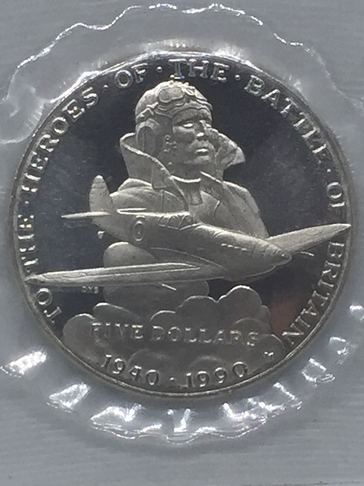 1990 Marshall Islands $5 Five Dollars Crown Coin Heroes Of Battle Of Britain UNC