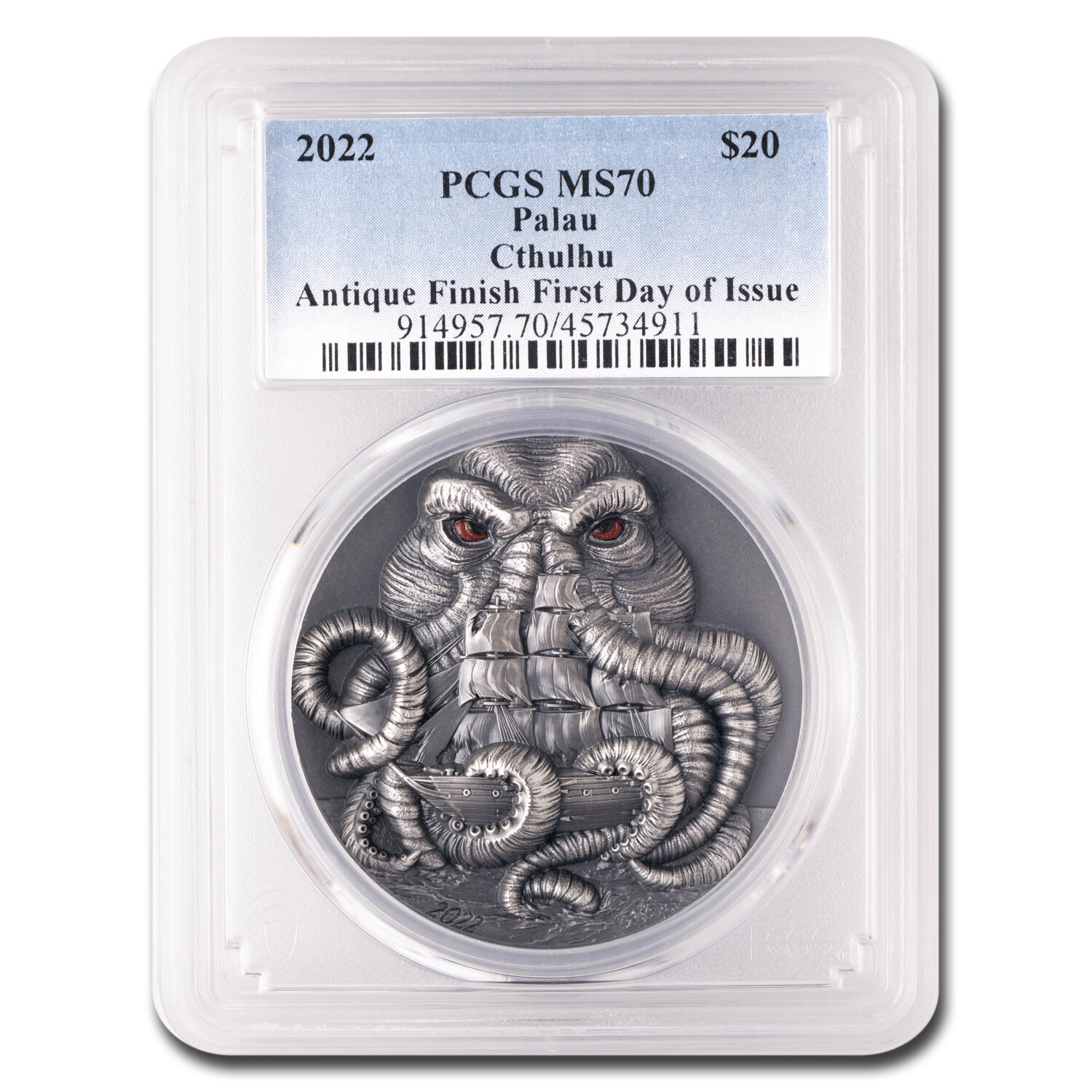 Description: Reverse: Features an image of Cthulhu with eyes in color. An image of Lovecraft and his date of birth and death are included. Silver Bars 1 oz 10 oz Kilo 100 oz. Gold Bars 1 oz Gold Bars Fractional Gold Bars.