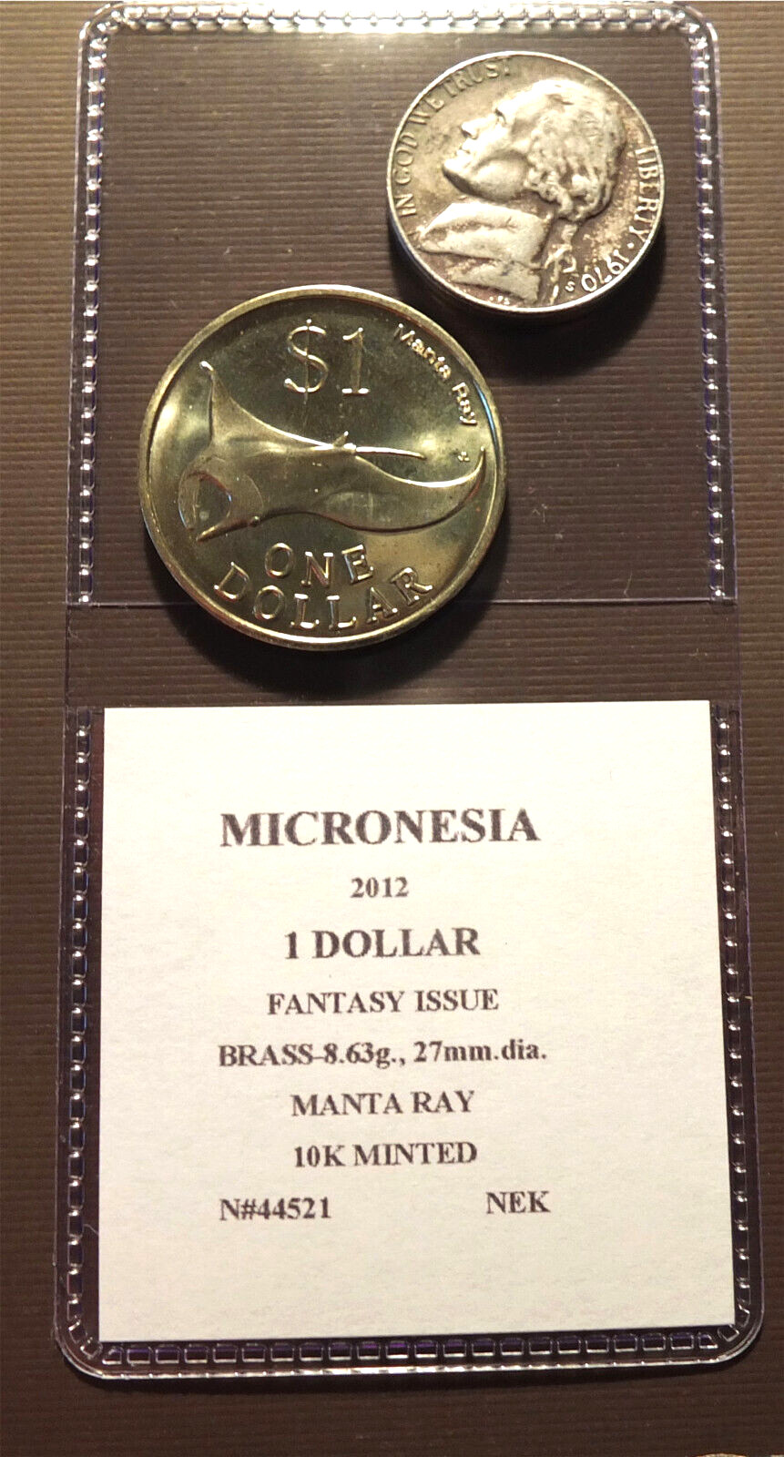 MICRONESIA - 2012 - 1 DOLLAR BRASS FANTASY COIN MANTA RAY BU N#44521 IHK