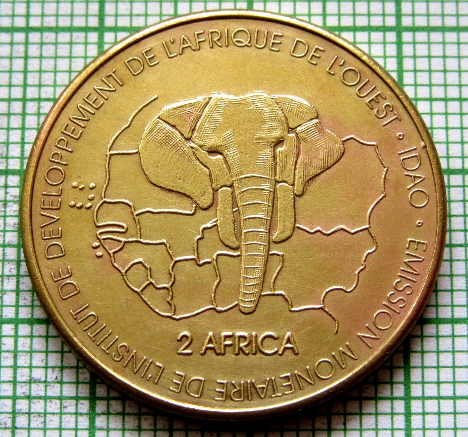 NIGER 2003 2 AFRICA or 3000 CFA COIN LION and ELEPHANT HEAD IDAO COINAGE Brass