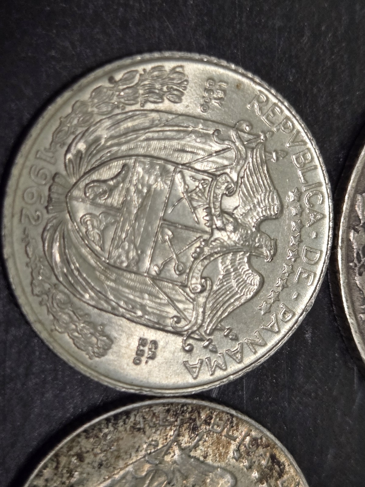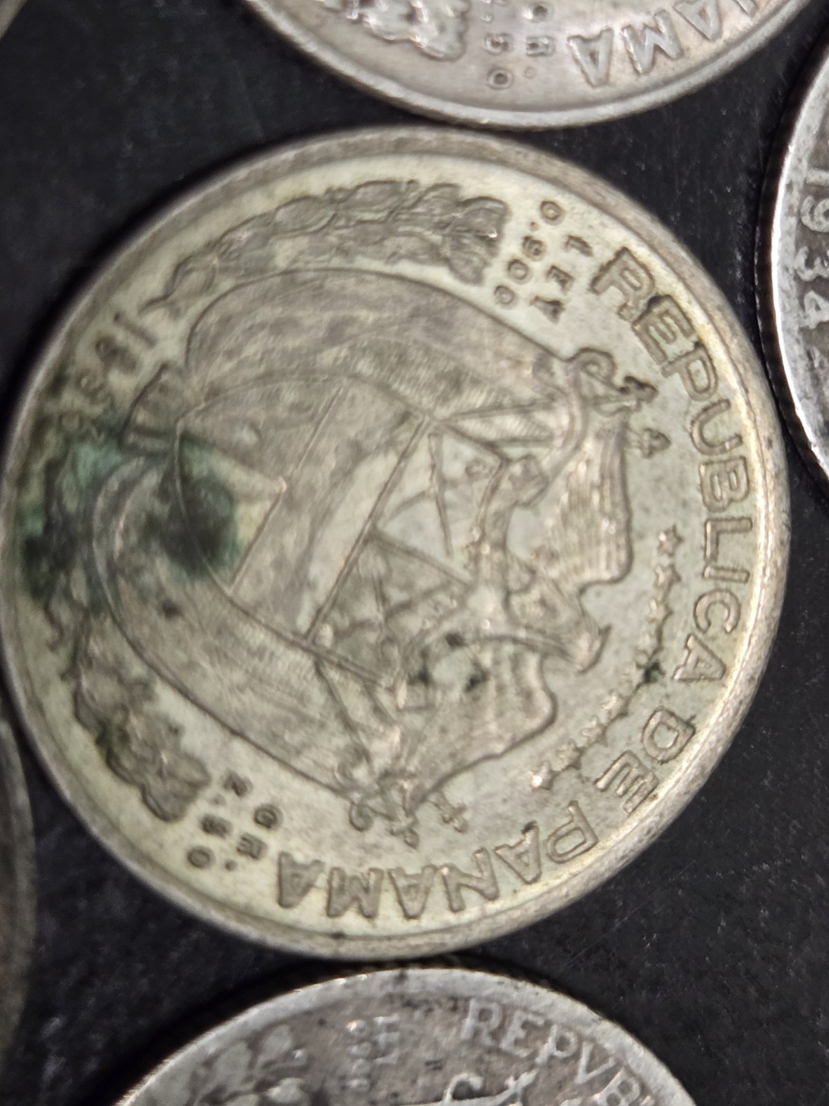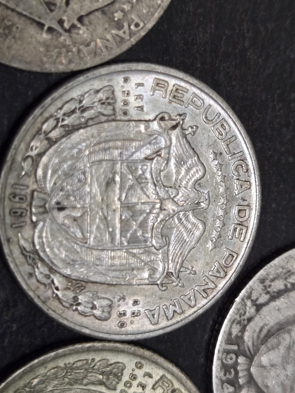 Description: The product consists of 9 Panama silver coins, total weighing 29.6 grams of 90% silver. This translates to over one ounce of silver. These circulated coins from various years have a fineness of 0.9 and are uncertified. They are a valuable find for collectors interested in Latin American coins, specifically from Panama. This hot deal offers a unique opportunity to add a substantial amount of silver to any collection.