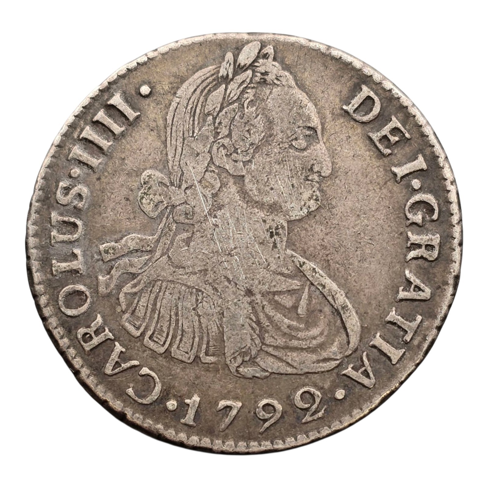 NICE 1792 Peru 2 Reales World Silver Coin Me IJ